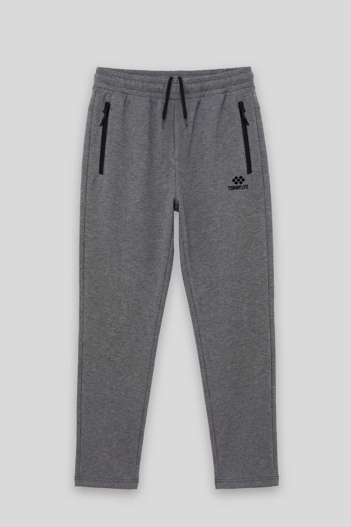 Tommylife Toptan Antrasit Melanj Basic Belden Bağcıklı Klasik Paça Erkek Büyük Beden Eşofman Alt - 84844