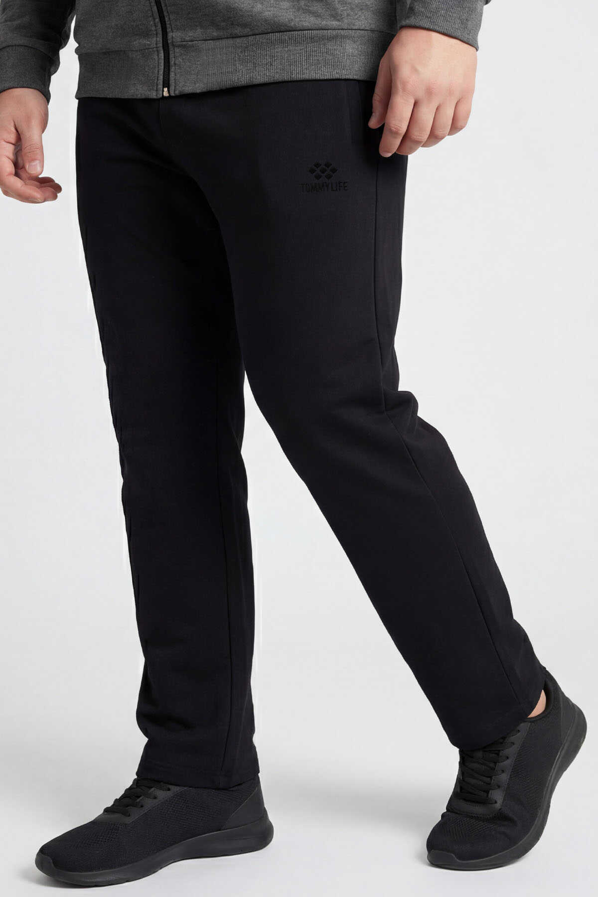 Tommylife Toptan Antrasit Melanj - Siyah Dik Yaka Klasik Paça Büyük Beden Erkek Eşofman Takım - 85176