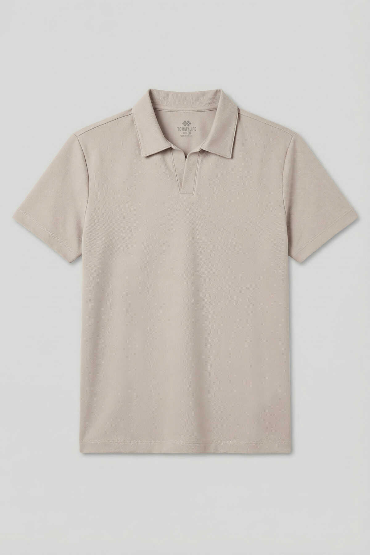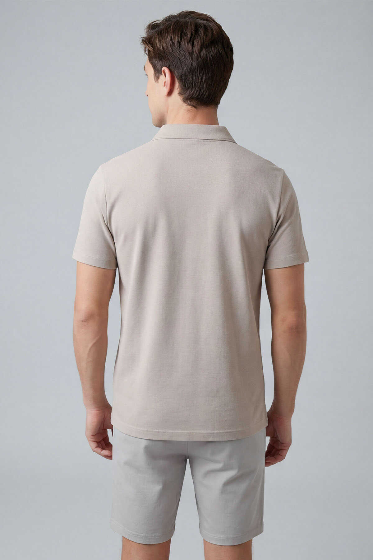 Tommylife Toptan Bej Rahat Form Yumuşak Dokulu Polo Yaka Erkek T-Shirt - 88496