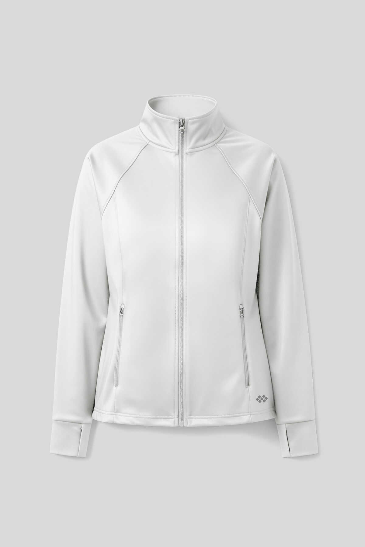 Tommlife Toptan Beyaz Fermuarlı Dik Yaka Basic Rahat Form Kadın Koşu Ceketi - 97310