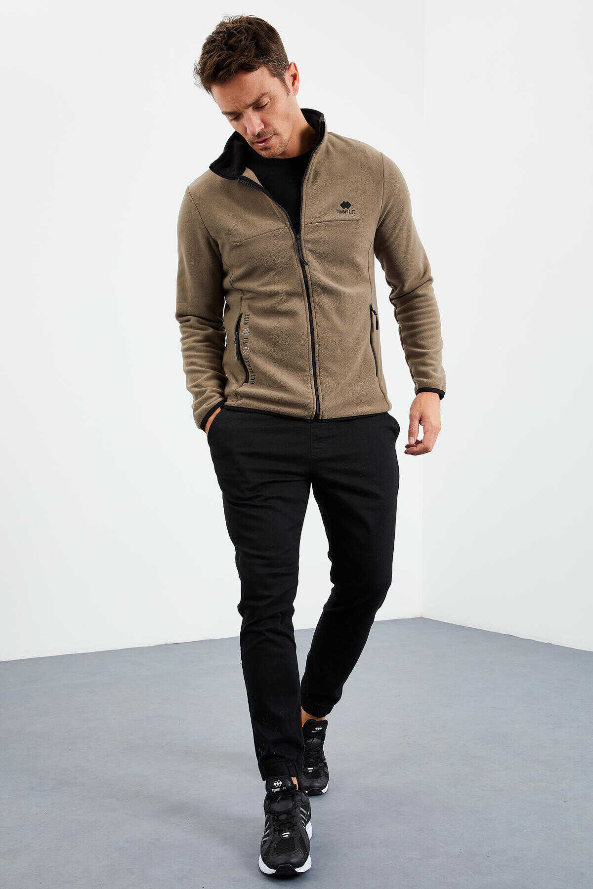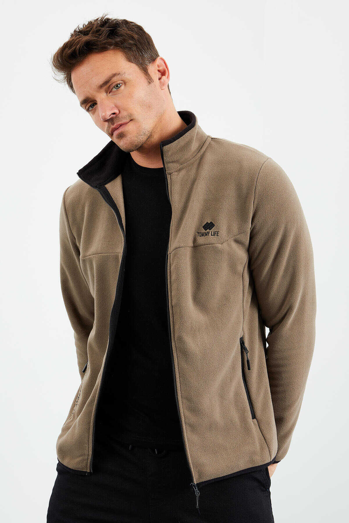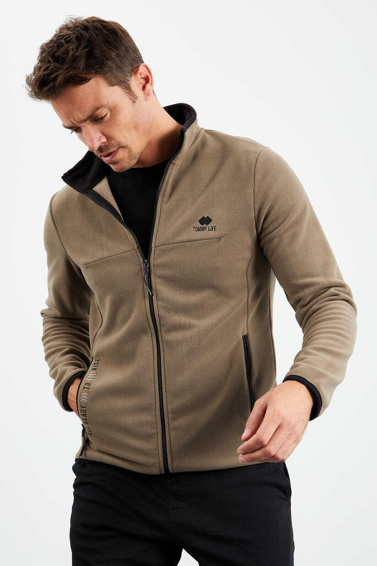 Tommylife Toptan Dik Yaka Standart Kalıp Fermuarlı Erkek Polar Sweatshirt 87992 Camel