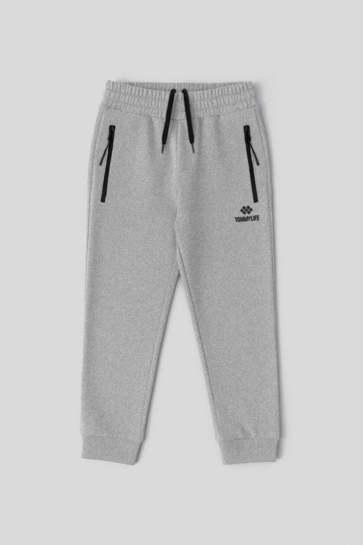 Tommylife Toptan Gri Melanj Basic Fermuar Cepli Belden Bağcıklı Jogger Erkek Çocuk Eşofman Alt - 10798