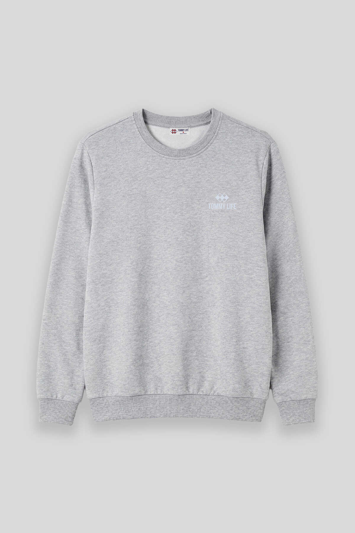 Tommylife Toptan Gri Melanj Basic O Yaka Büyük Beden Erkek Sweatshirt - 88126