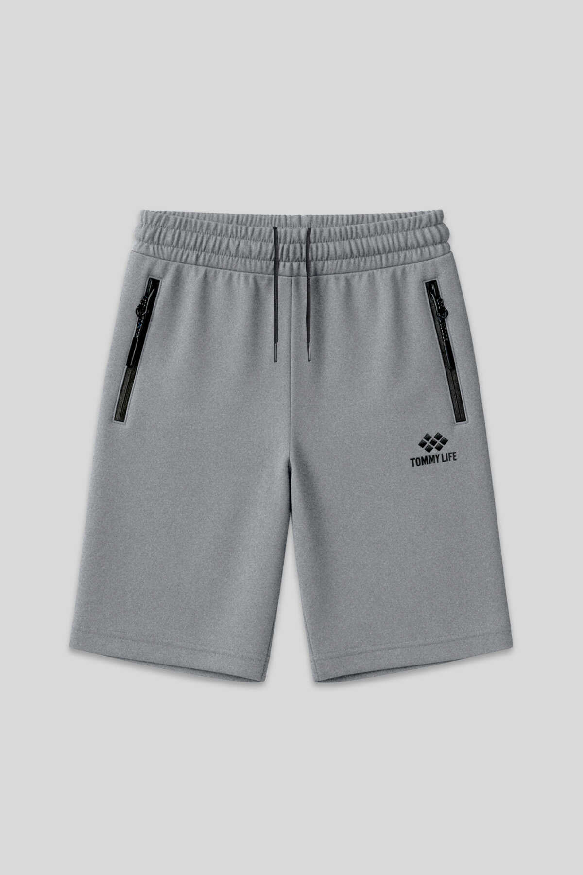 Tommylife Toptan Gri Melanj Büyük Beden Fermuar Cep Detaylı Standart Kalıp Erkek Şort - 81151