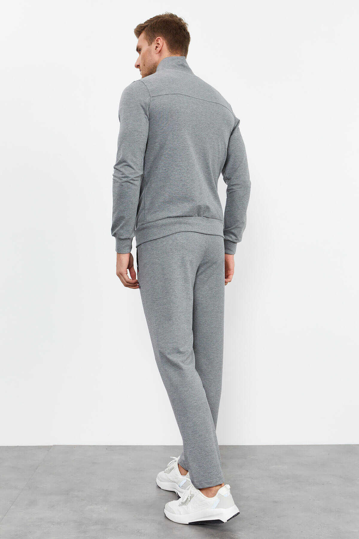 Ürün Adı : Gri Melanj Erkek Dik Yaka Fermuarlı Rahat Form Klasik Paça Eşofman Takımı