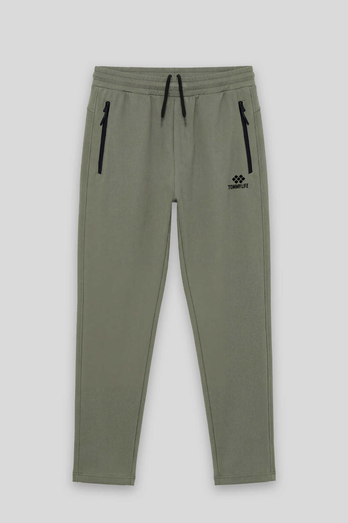 Tommylife Toptan Haki Basic Belden Bağcıklı Klasik Paça Erkek Büyük Beden Eşofman Alt - 84844