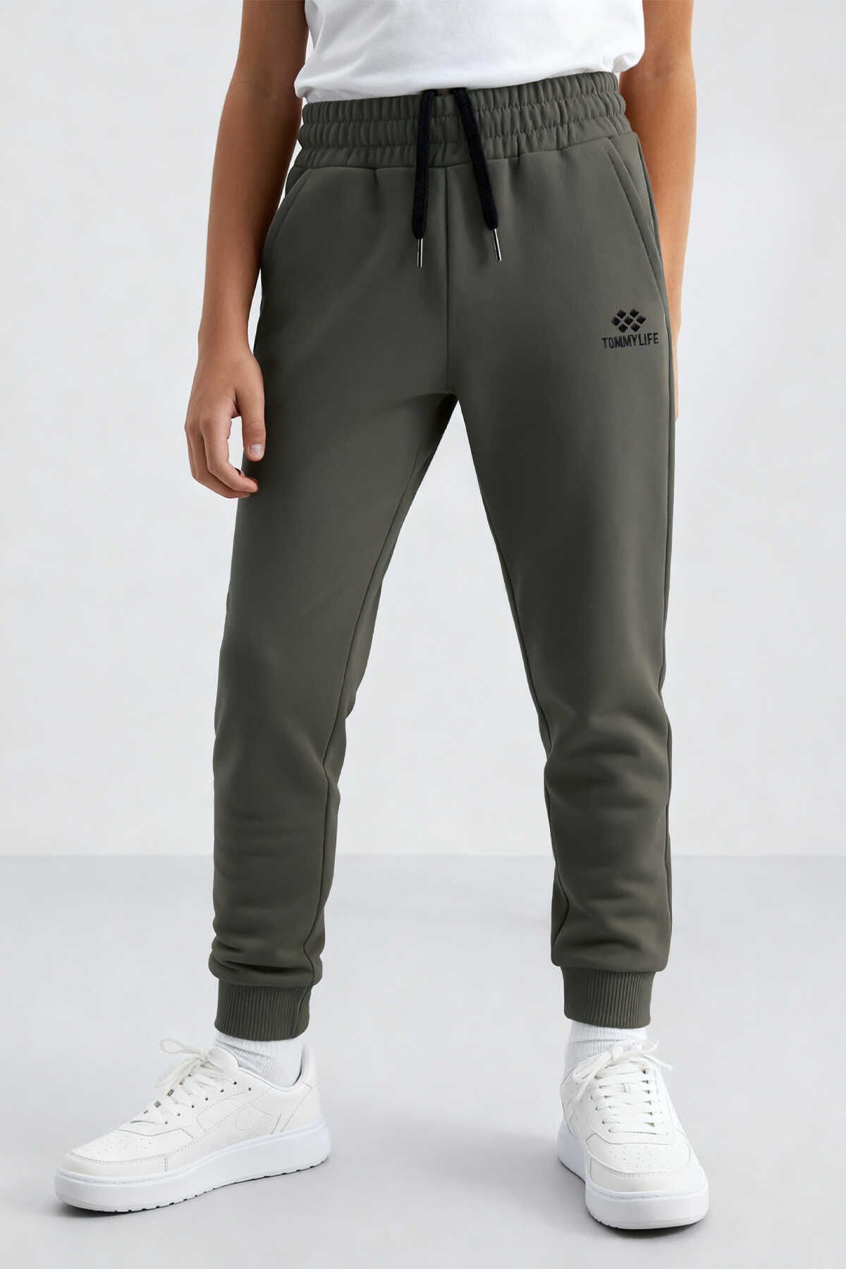 Tommlife Toptan Haki Standart Manşetli İnce Erkek Çocuk Eşofman Alt - 11062