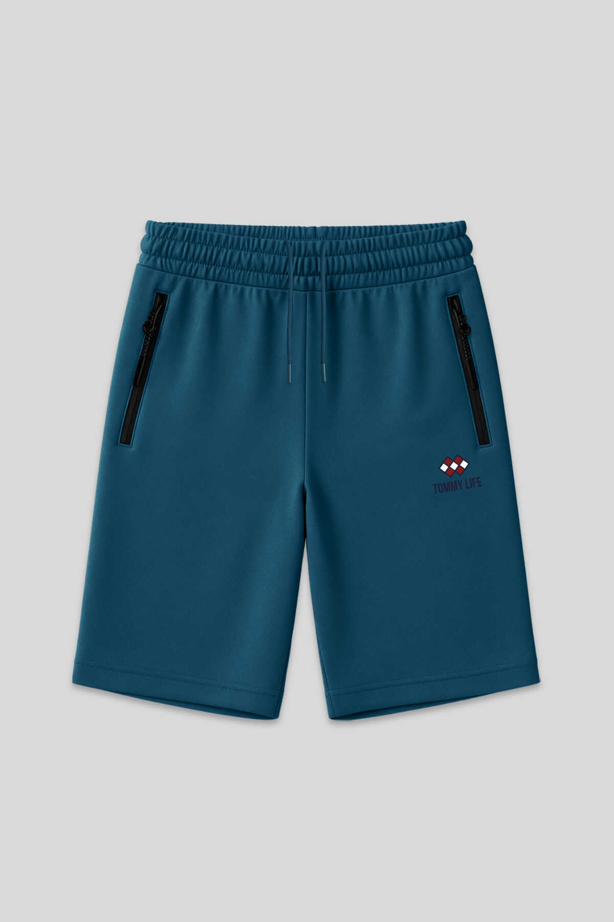 Tommylife Toptan İndigo Büyük Beden Fermuar Cep Detaylı Standart Kalıp Erkek Şort - 81151