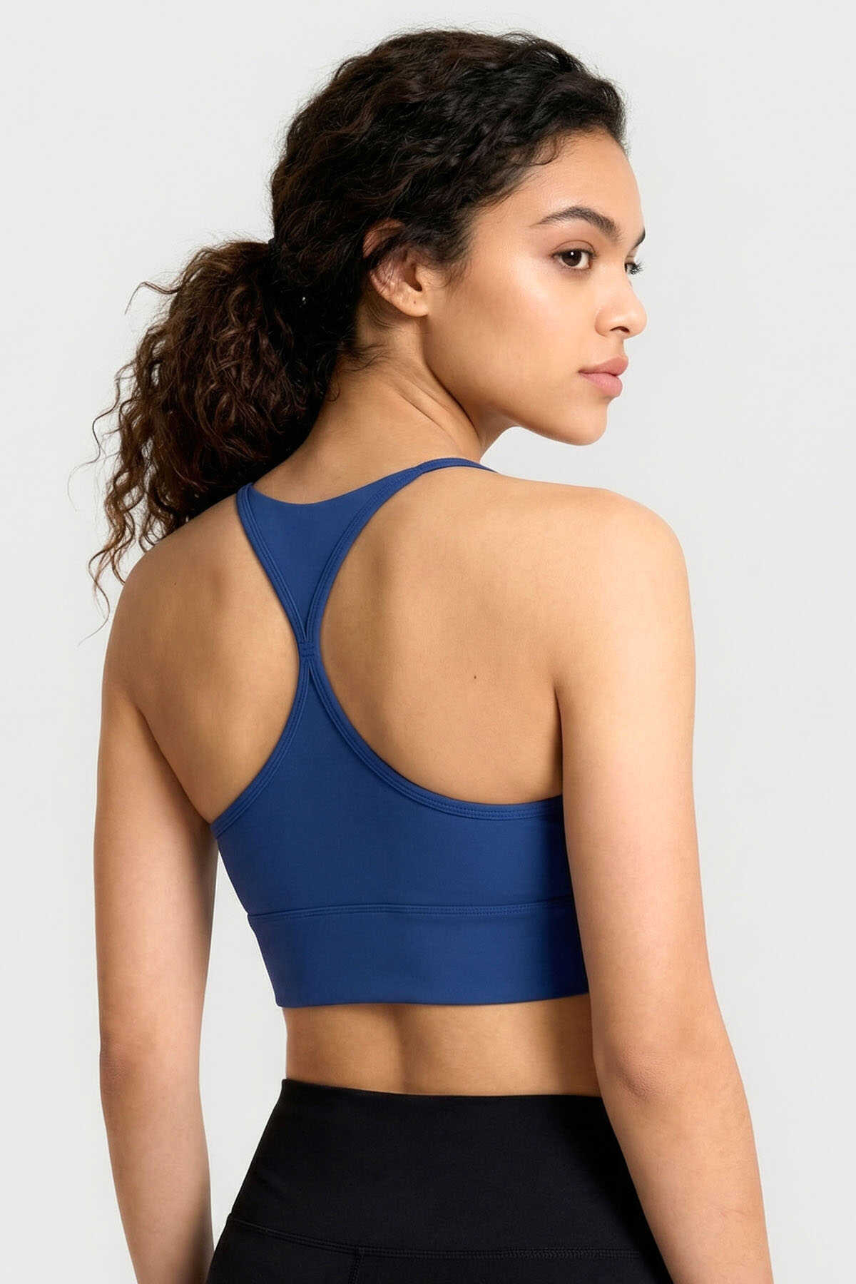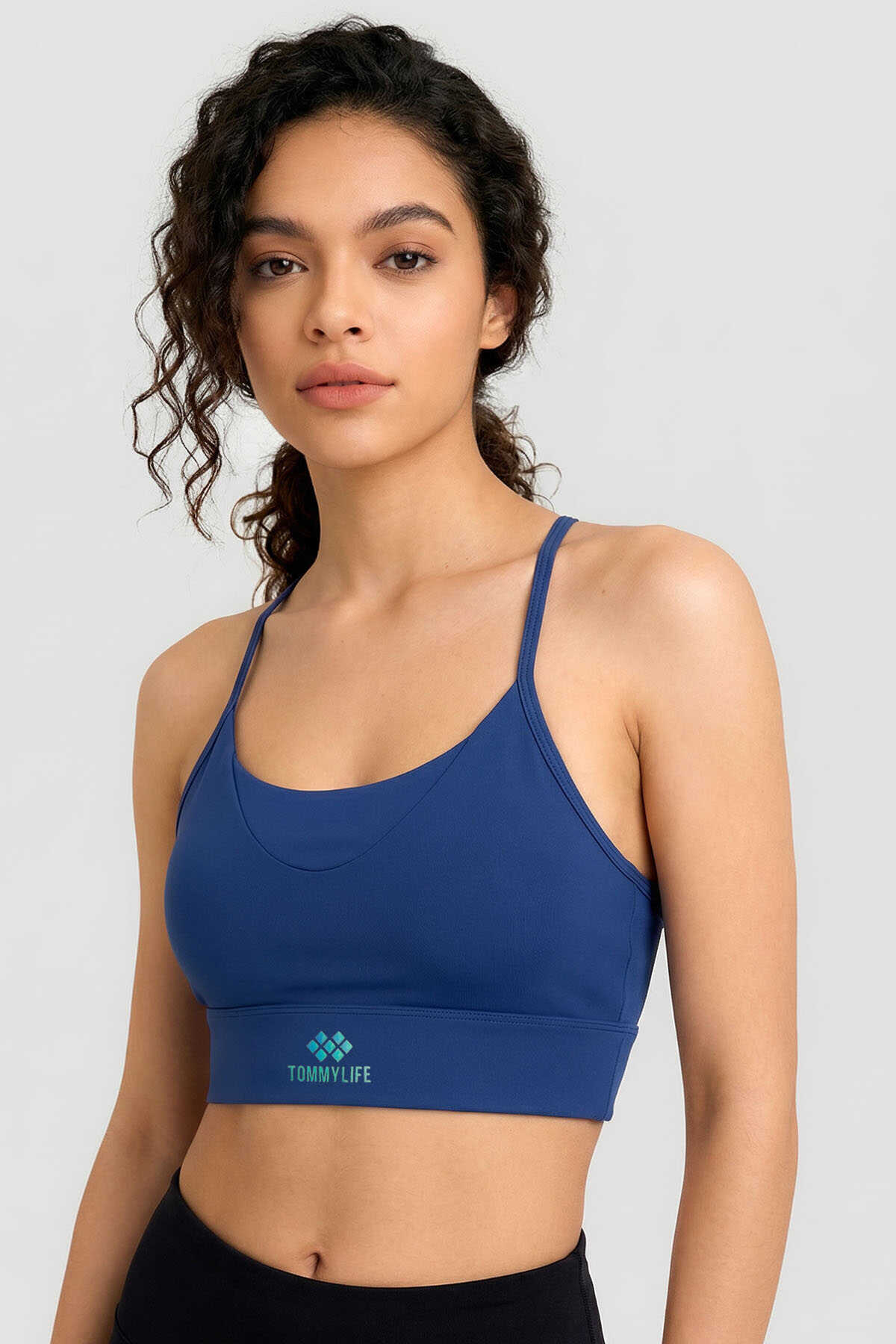 Tommylife Toptan İndigo Standart Fit Baskılı Sırt Detaylı Kadın Spor Büstiyer - 97300