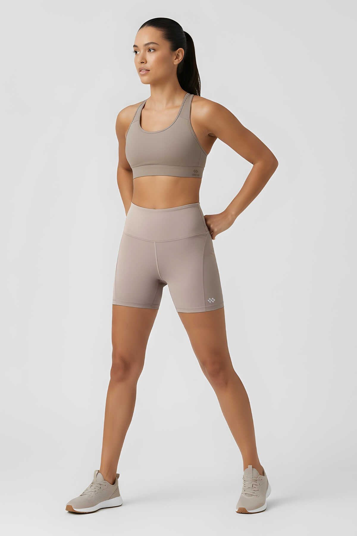 Tommlife Toptan Koyu Bej Yüksek Bel Slim Fit Kısa Biker Kadın Tayt - 91017