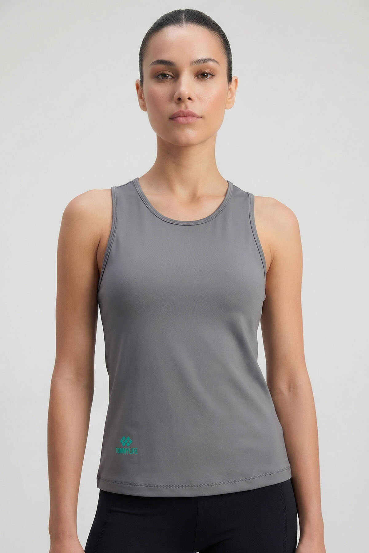 Tommylife Toptan Koyu Gri Standart Fit Çapraz Sırt Detaylı Kadın Spor Atlet - 97296