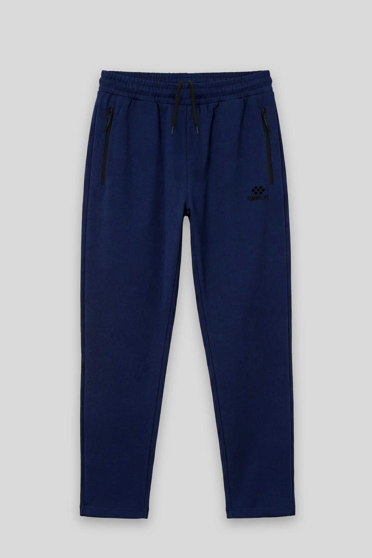 Tommylife Toptan Lacivert Basic Belden Bağcıklı Klasik Paça Erkek Büyük Beden Eşofman Alt - 84844
