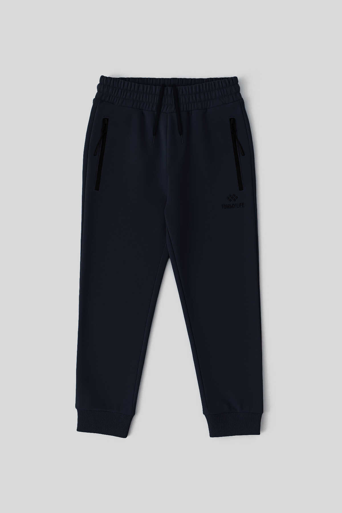 Tommylife Toptan Lacivert Basic Fermuar Cepli Belden Bağcıklı Jogger Erkek Çocuk Eşofman Alt - 10798