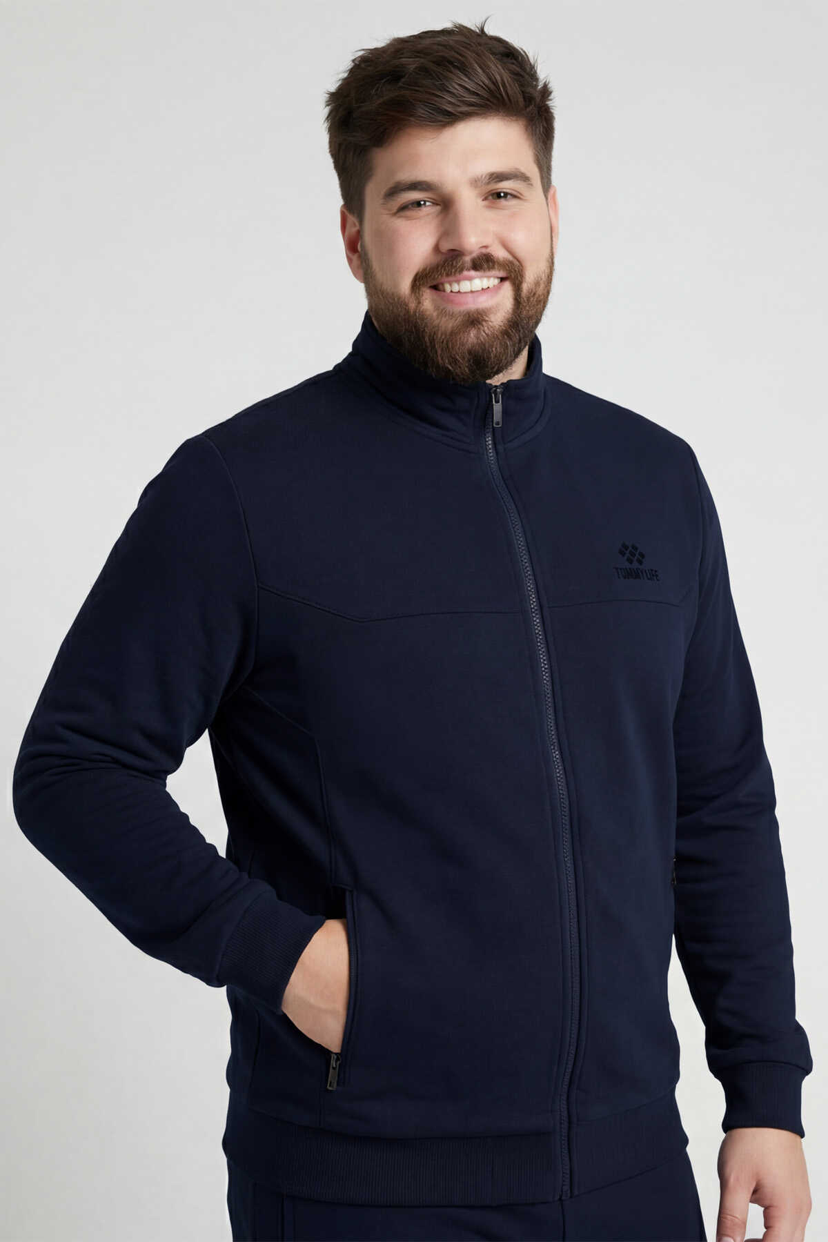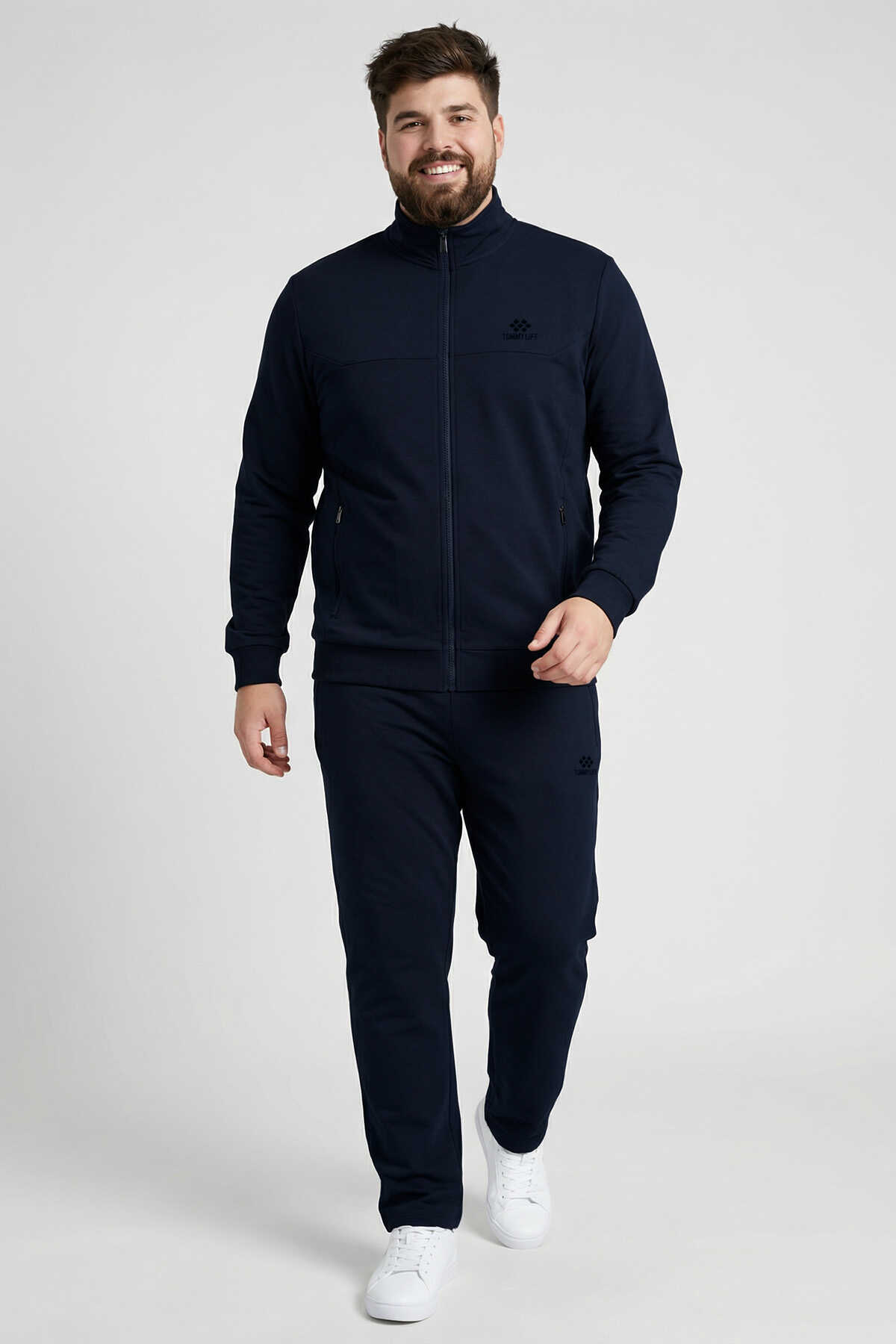 Tommylife Toptan Lacivert Dik Yaka Klasik Paça Büyük Beden Erkek Eşofman Takım - 85176