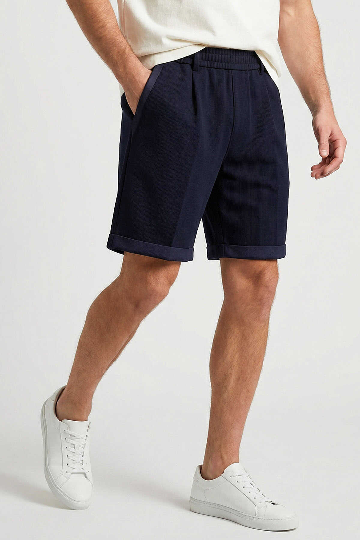 Tommylife Toptan Lacivert Oversize Fit Basic Kemer Detaylı Erkek Şort - 81285