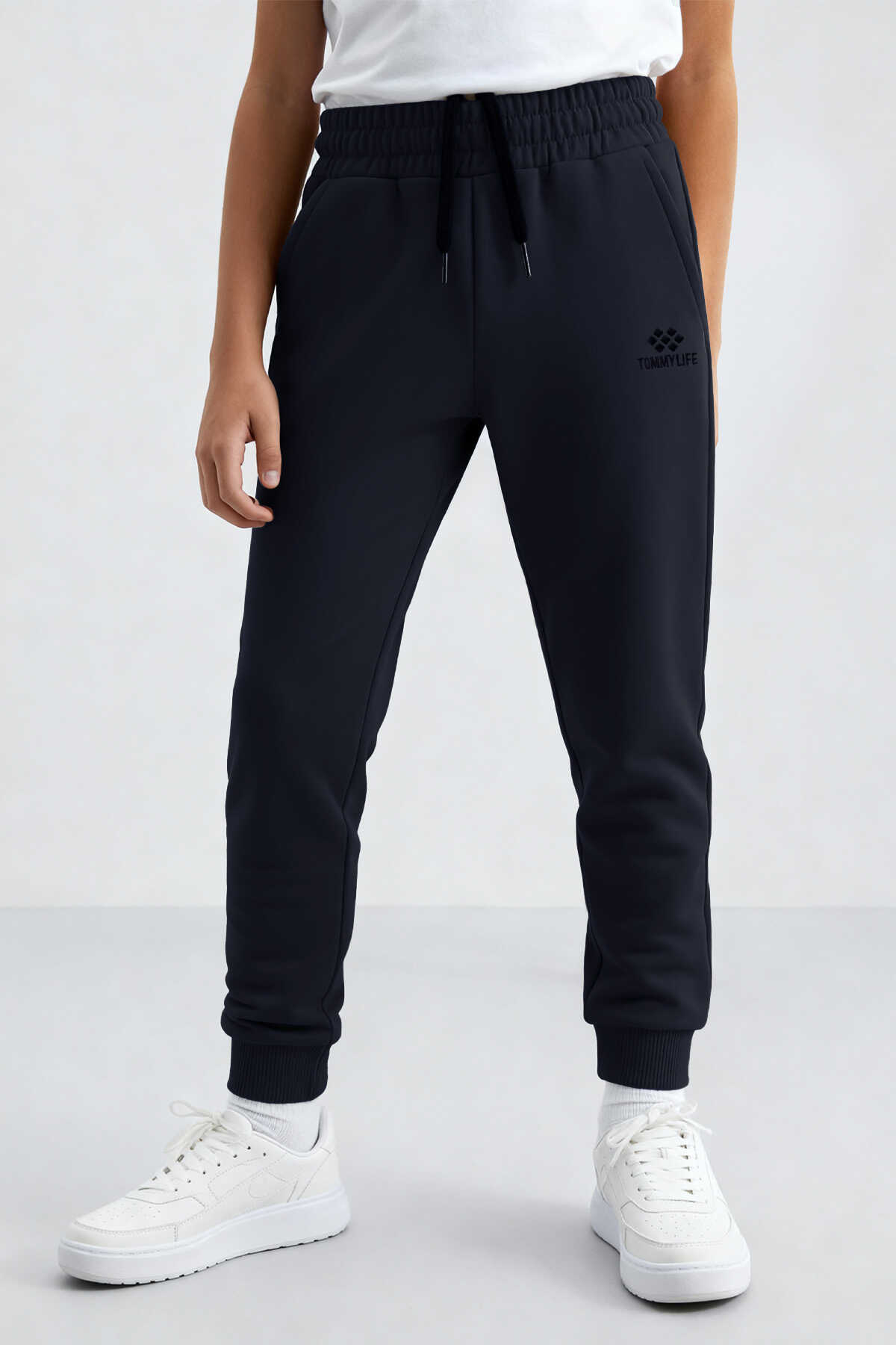 Tommlife Toptan Lacivert Standart Manşetli İnce Erkek Çocuk Eşofman Alt - 11062