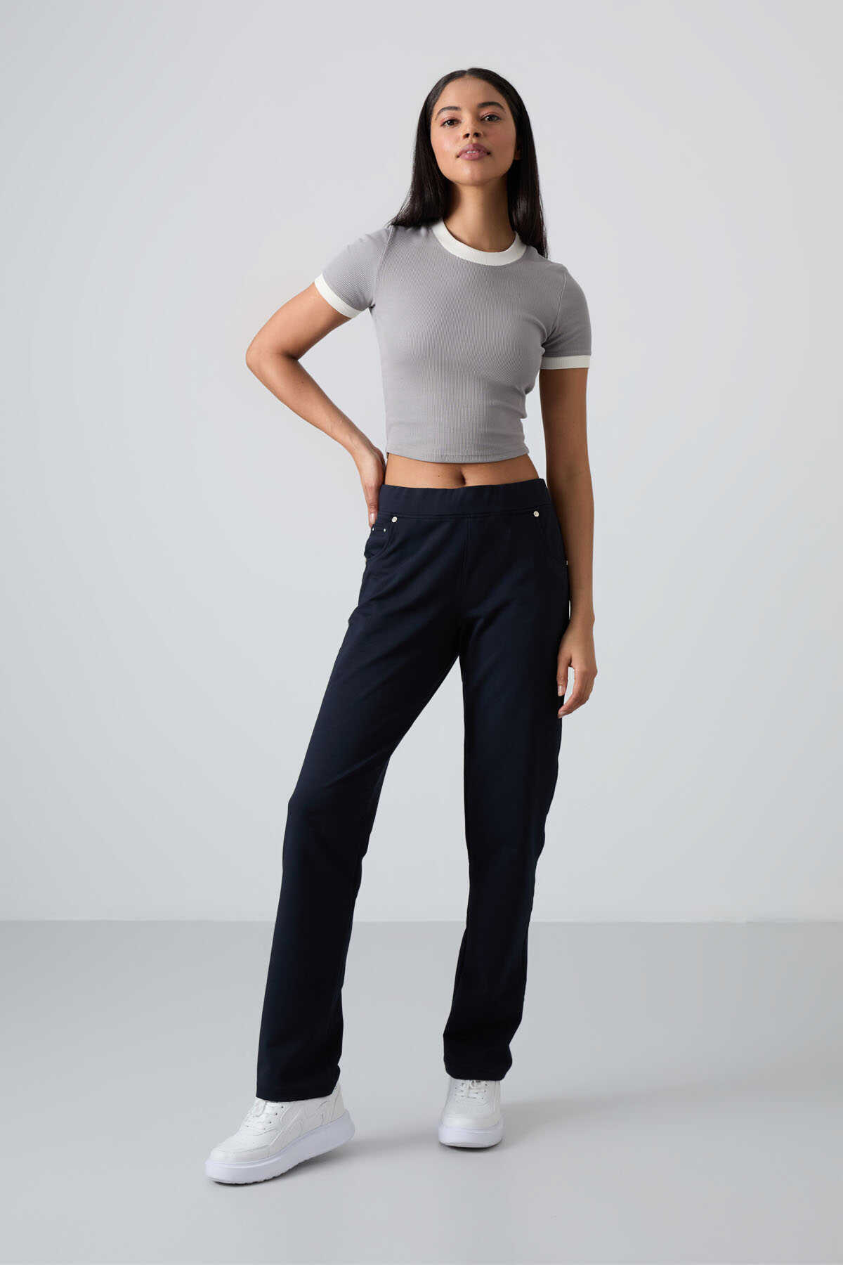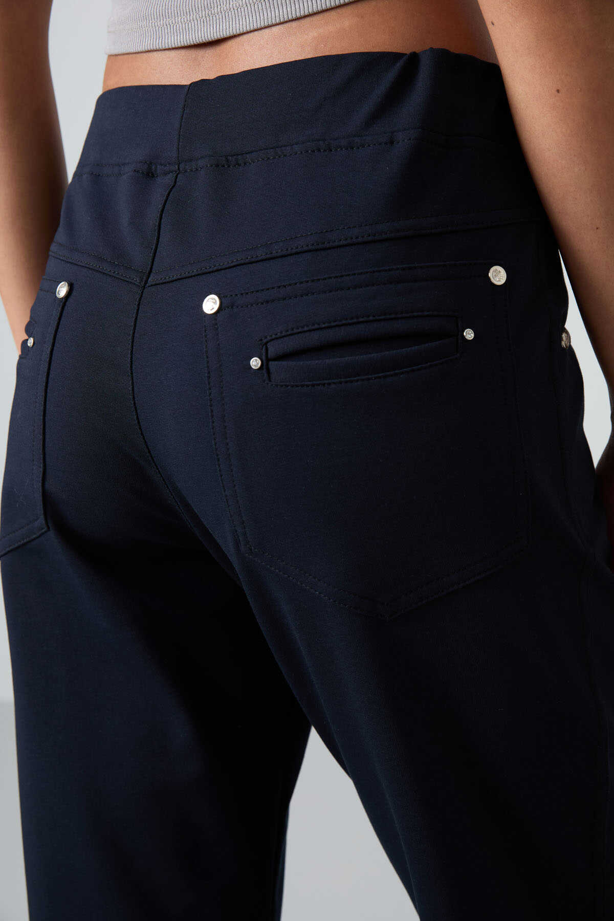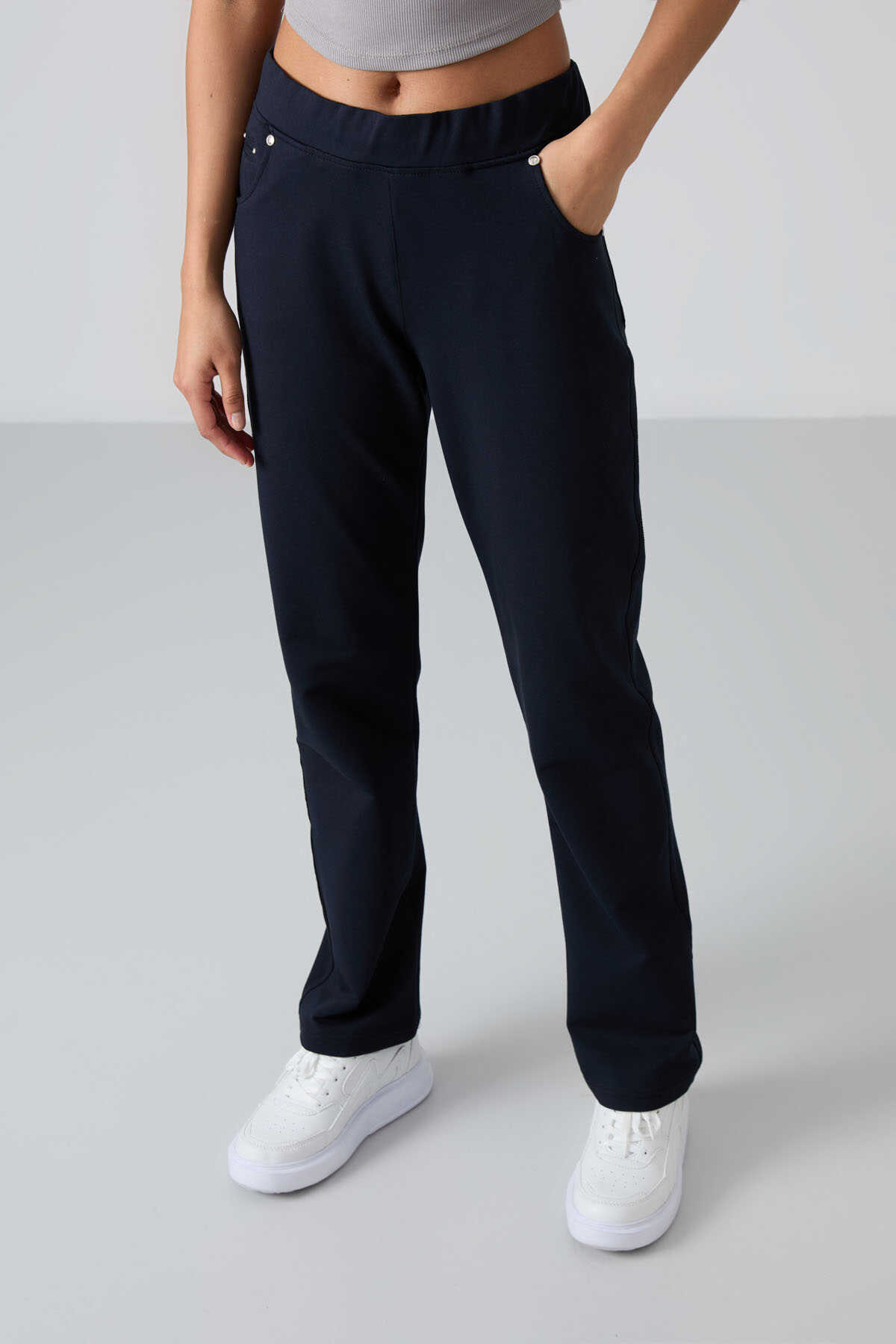 Tommylife Toptan Lacivert Taş Detaylı Cepli Rahat Form Klasik Paça Kadın Eşofman Altı - 94007