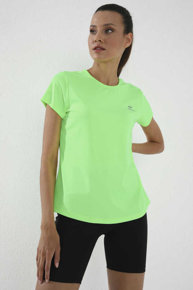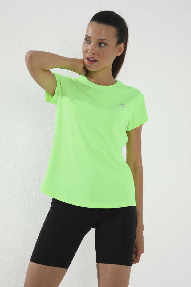 Tommylife Toptan Neon Yeşil Basic Kısa Kol Standart Kalıp O Yaka Kadın T-Shirt - 97144