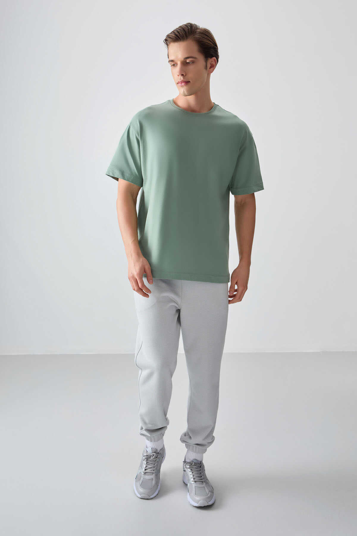 Tommylife Toptan O Yaka Oversize Basic Erkek T-Shirt 88353 Açık Yeşil