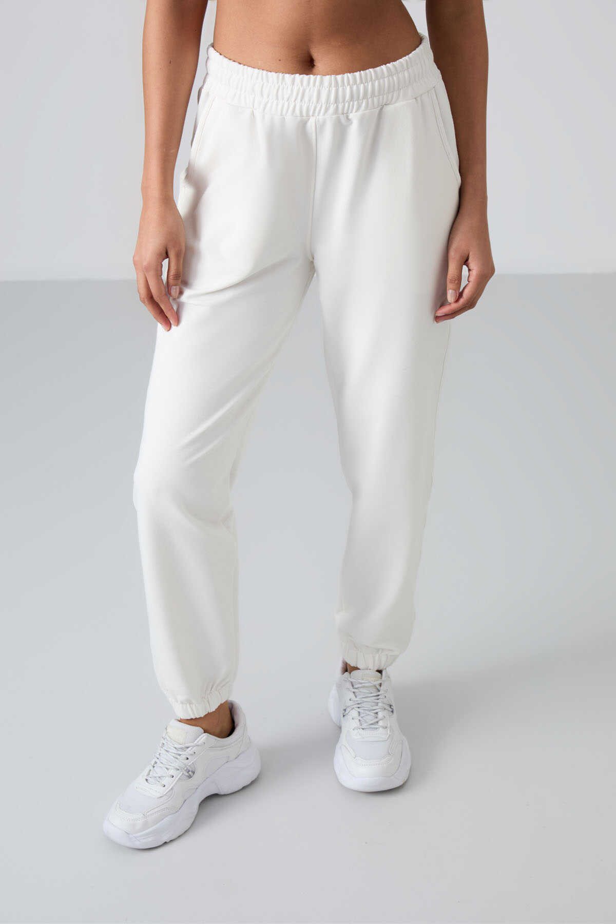 Tommylife Toptan Rahat Form Lastik Paça Kadın Eşofman Alt 94583 Ekru
