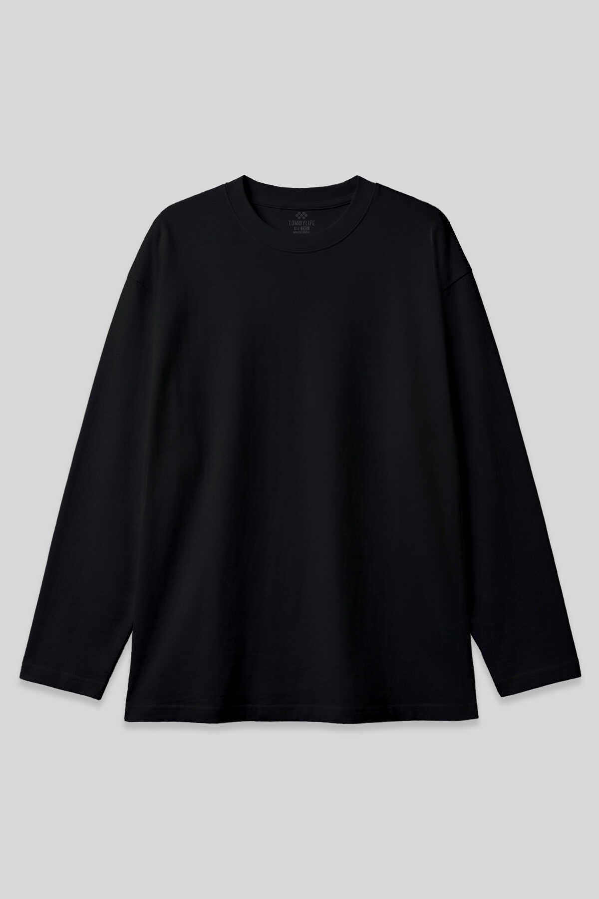 Tommylife Toptan Siyah Basic O Yaka Erkek Sweatshirt - 88107