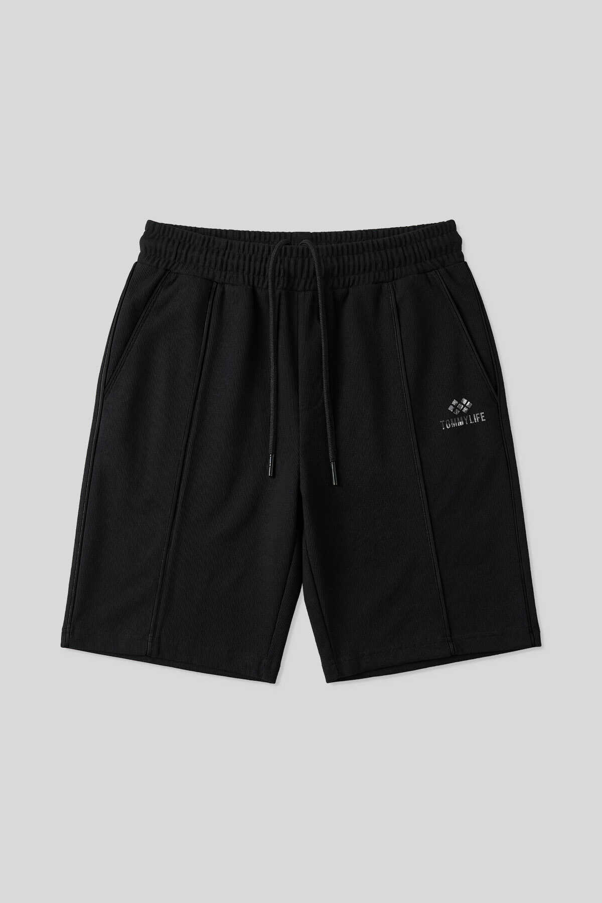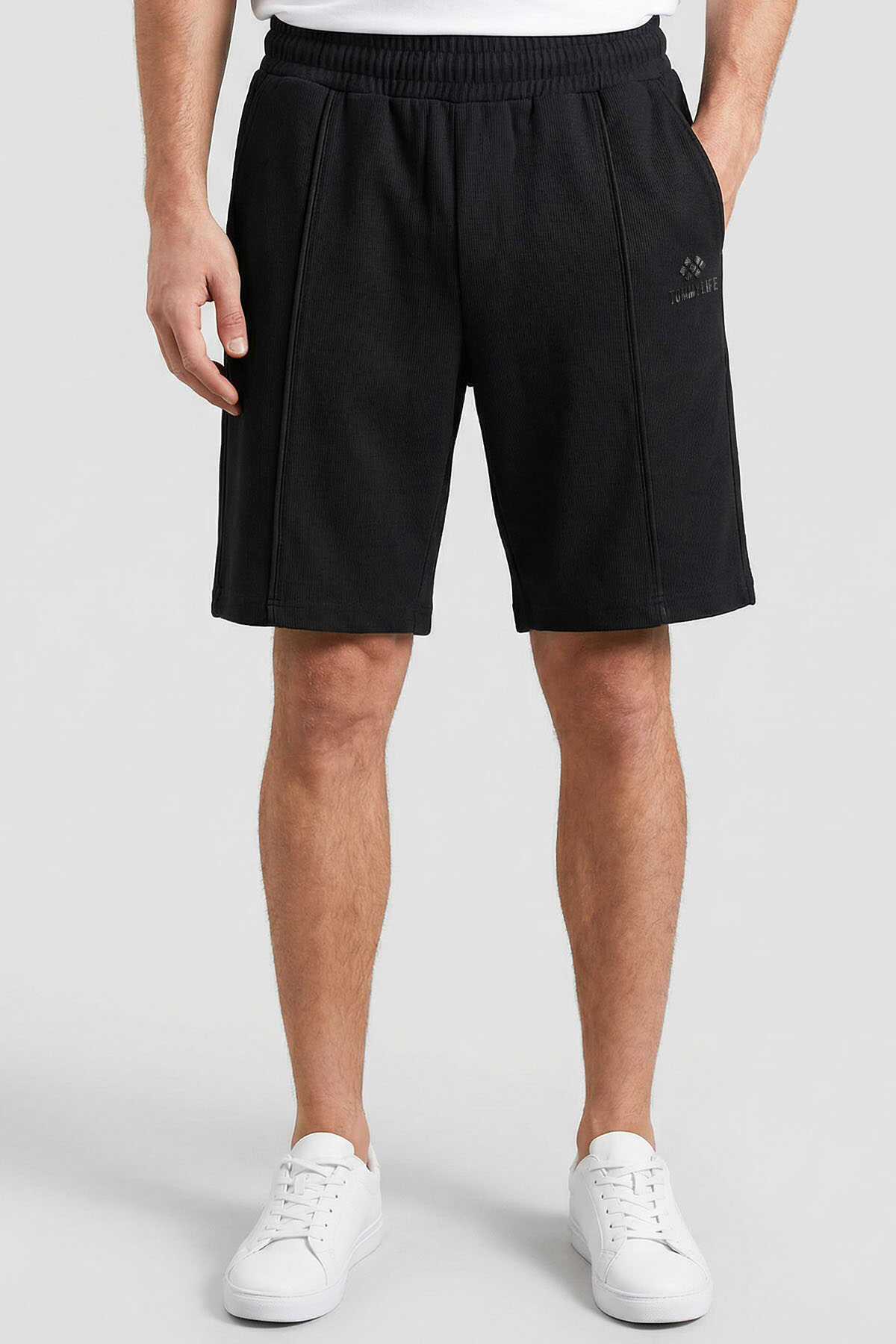Tommylife Toptan Siyah Oversize Fit Basic Ön Dikiş Detaylı Erkek Şort - 81283