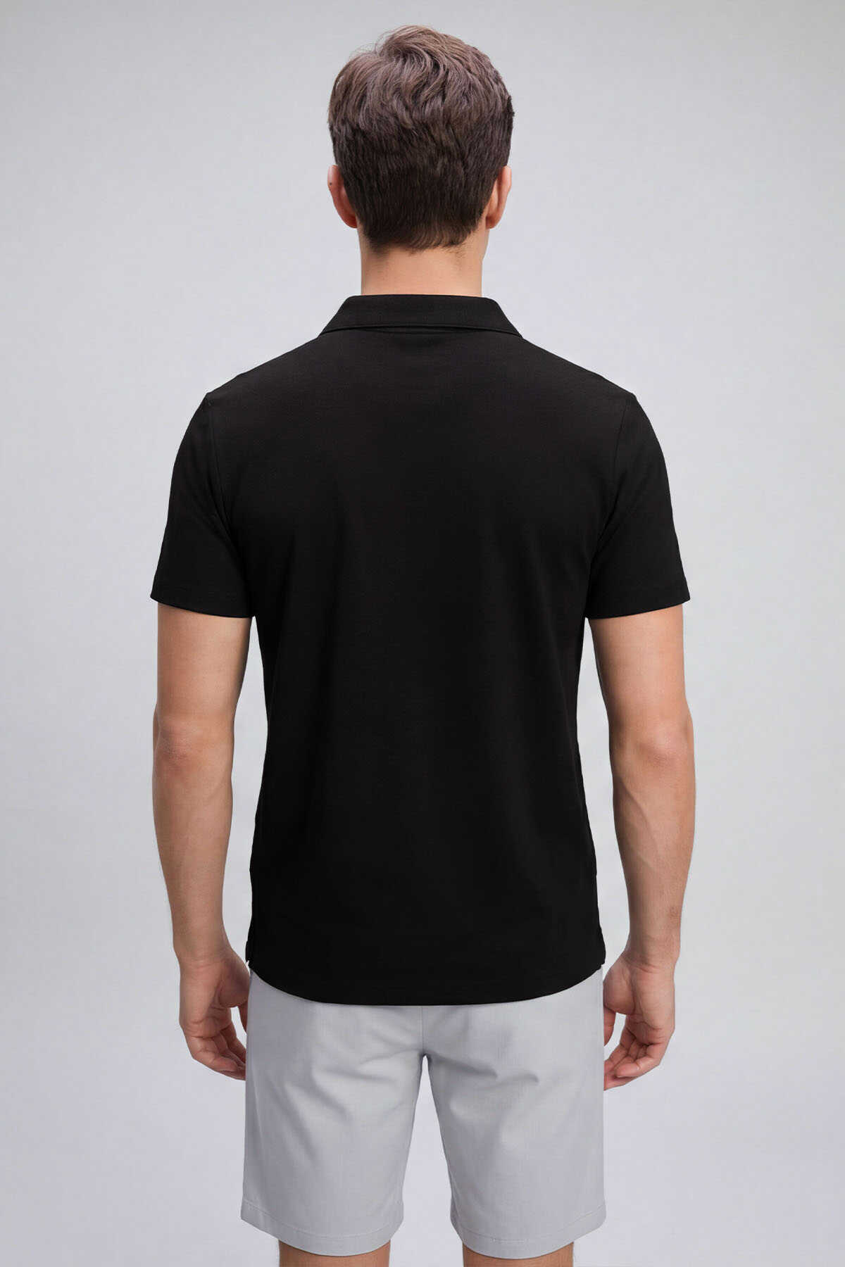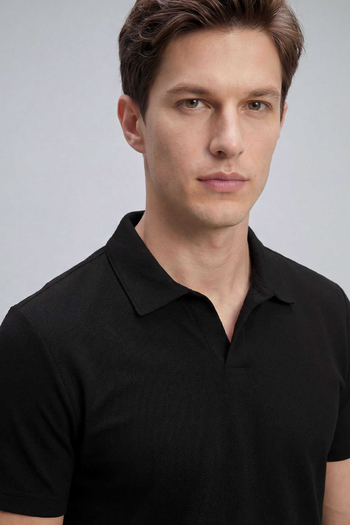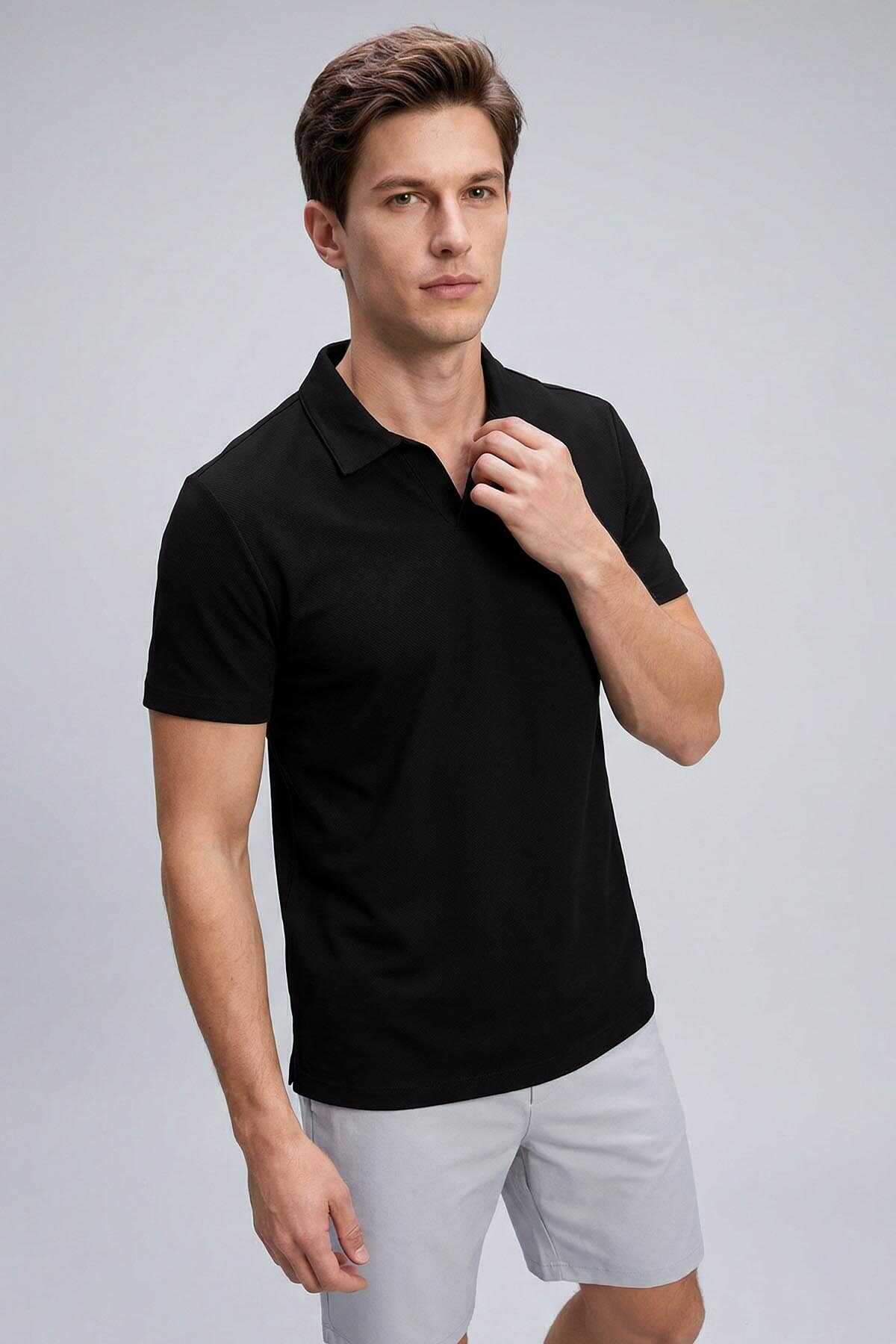 Tommylife Toptan Siyah Rahat Form Yumuşak Dokulu Polo Yaka Erkek T-Shirt - 88496