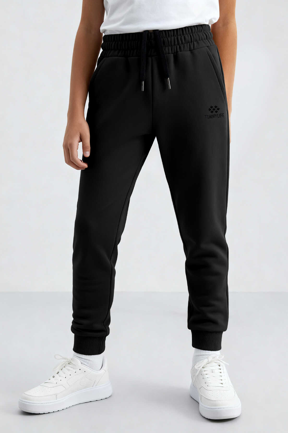 Tommlife Toptan Siyah Standart Manşetli İnce Erkek Çocuk Eşofman Alt - 11062