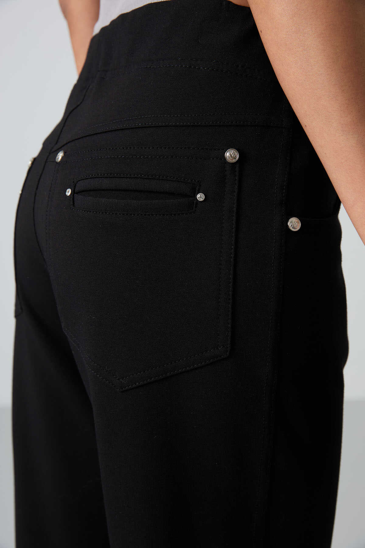 Tommylife Toptan Siyah Taş Detaylı Cepli Rahat Form Klasik Paça Kadın Eşofman Altı - 94007