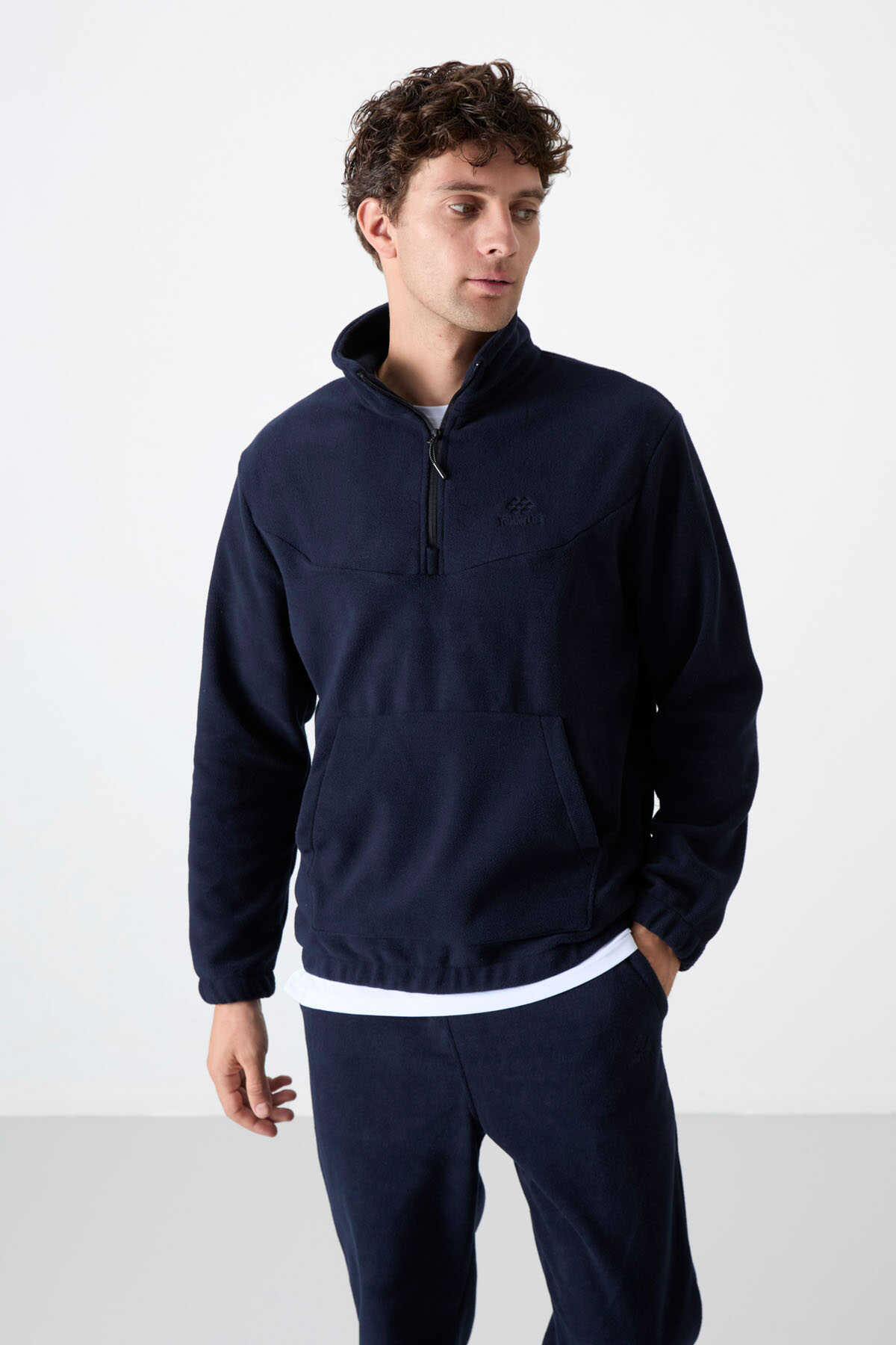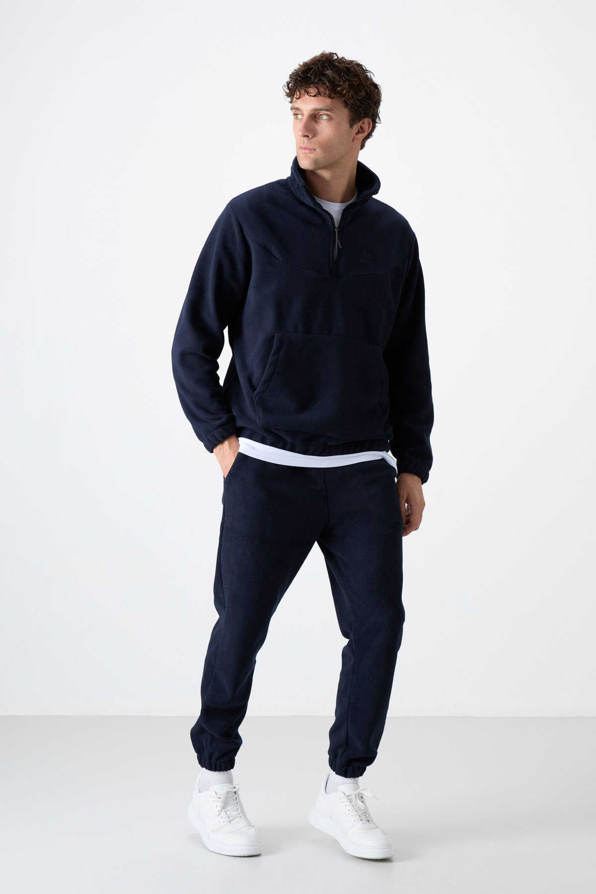 Tommylife Toptan Standart Kalıp Yarım Fermuar Polar Erkek Eşofman Takımı 85159 Lacivert
