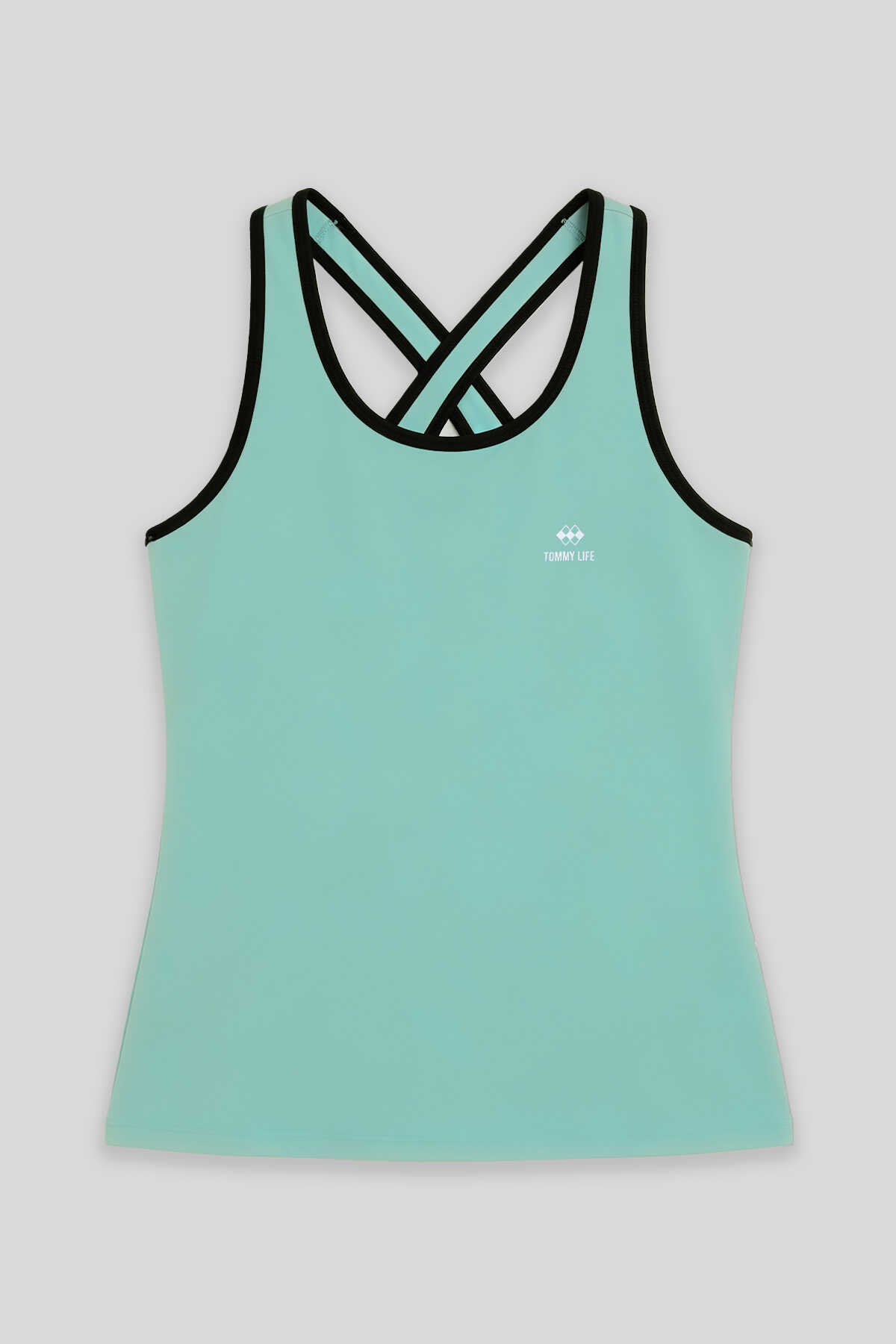 Tommylife Toptan Su Yeşili Kadın Çapraz Askılı Kolsuz Standart Kalıp Spor Atlet - 97094