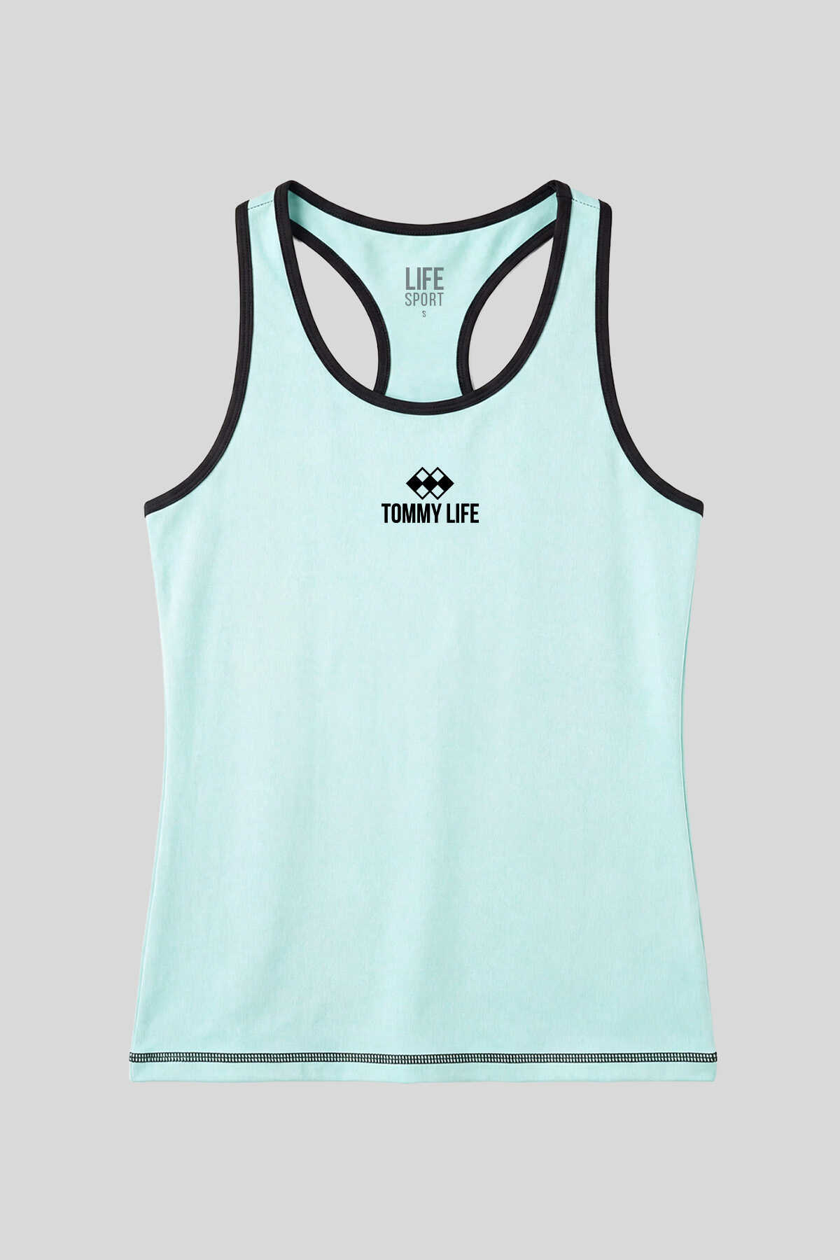 Ürün Adı : Tommy Life Toptan Su Yeşili Kolsuz Arka Yazı Detaylı Standart Kalıp Kadın Spor Atlet - 97096