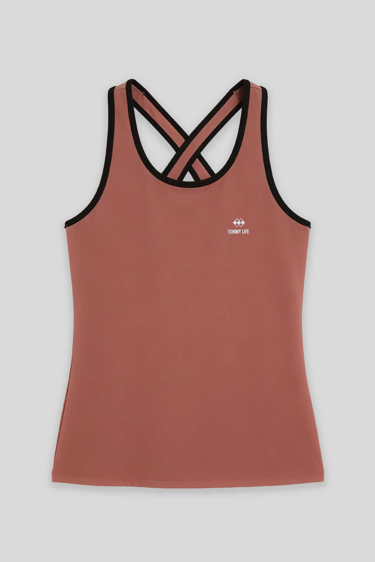 Tommylife Toptan Yaban Gülü Kadın Çapraz Askılı Kolsuz Standart Kalıp Spor Atlet - 97094
