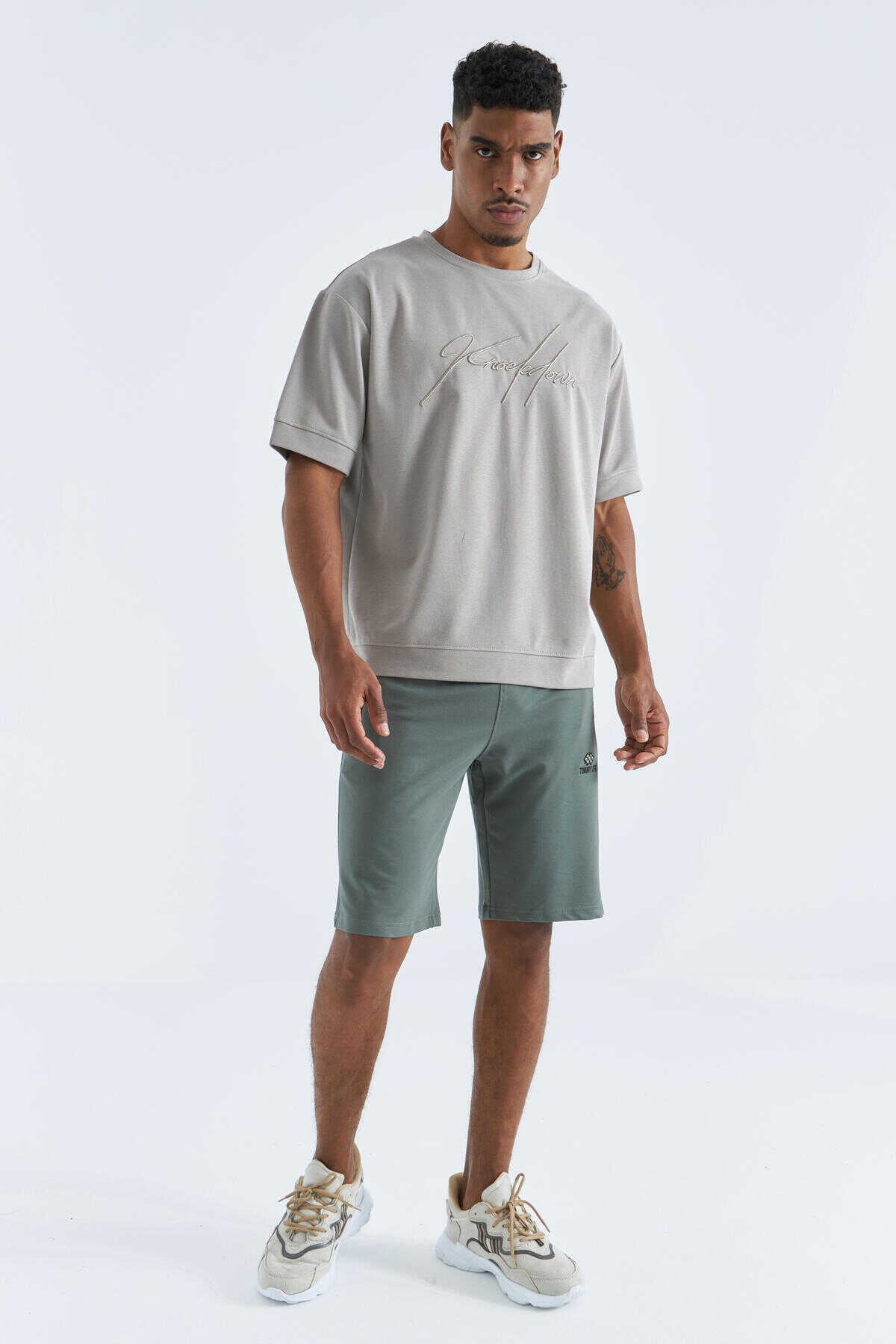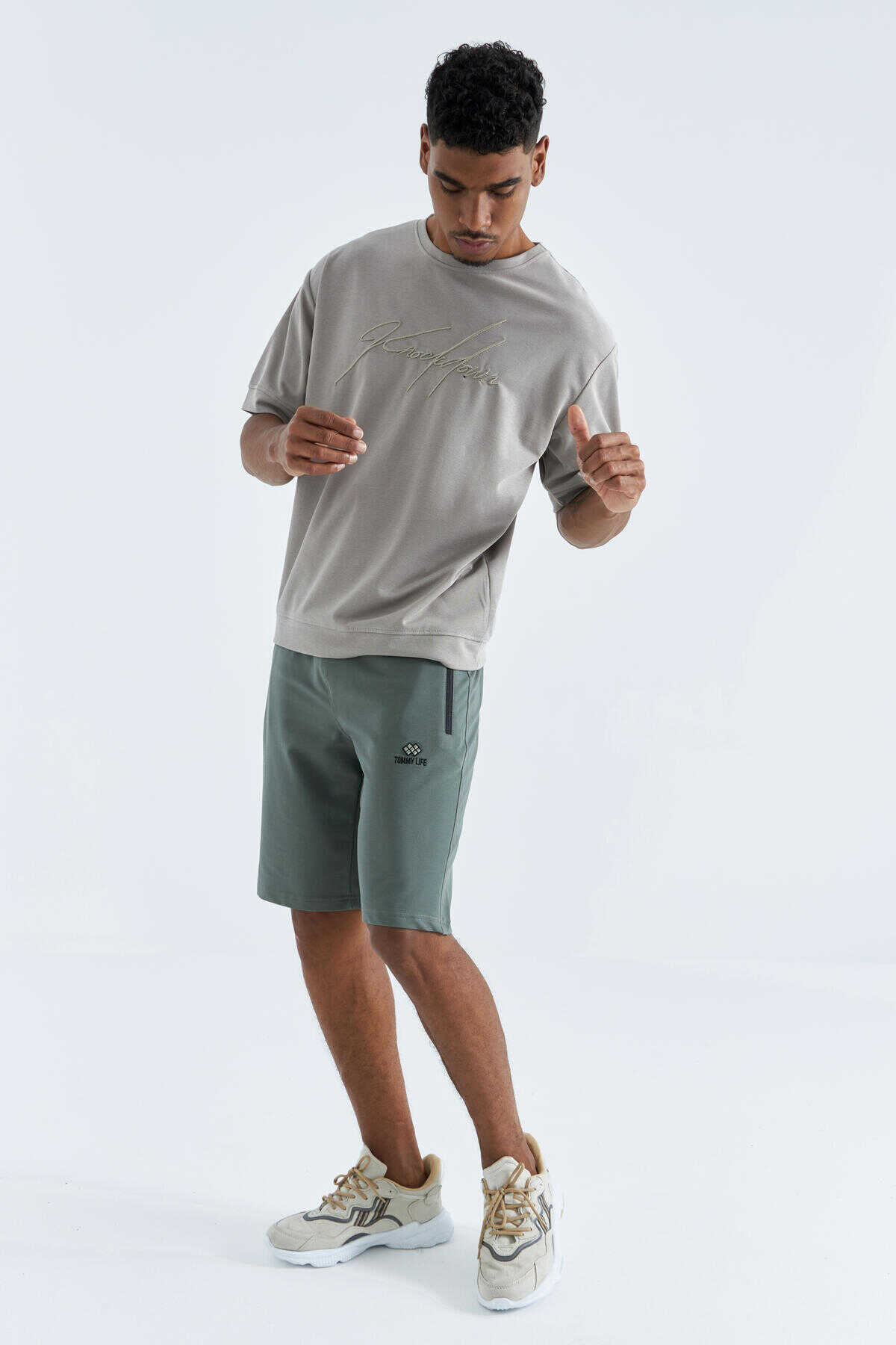 Tommylife Wholesale Almond Green Hidden Zip Back Pocket Standard Fit Men's Short - 81136