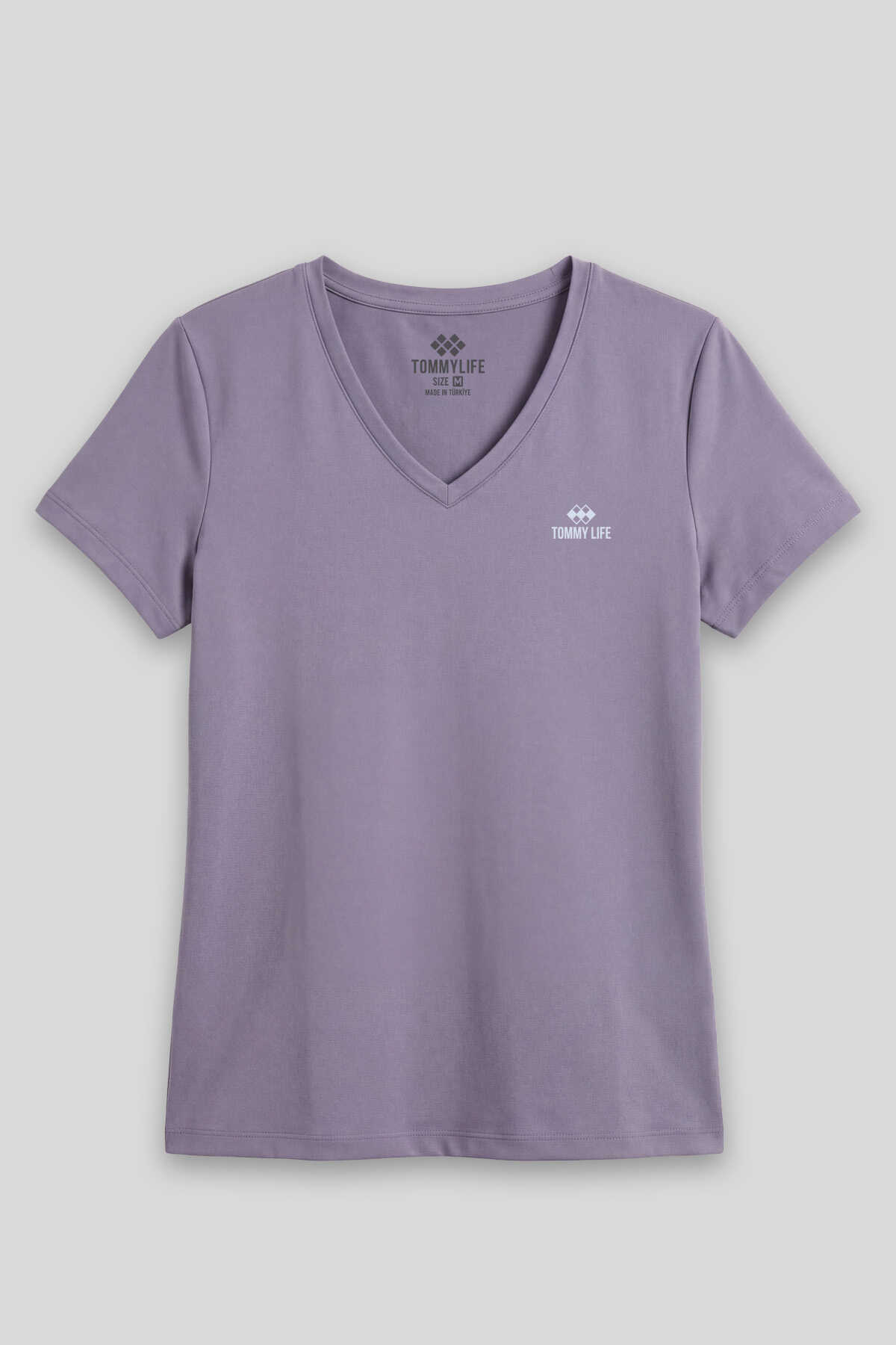 Tommylife Wholesale Amethyst Basic Short Sleeve Standard Mold V Collar Women's T-shirt - 97145