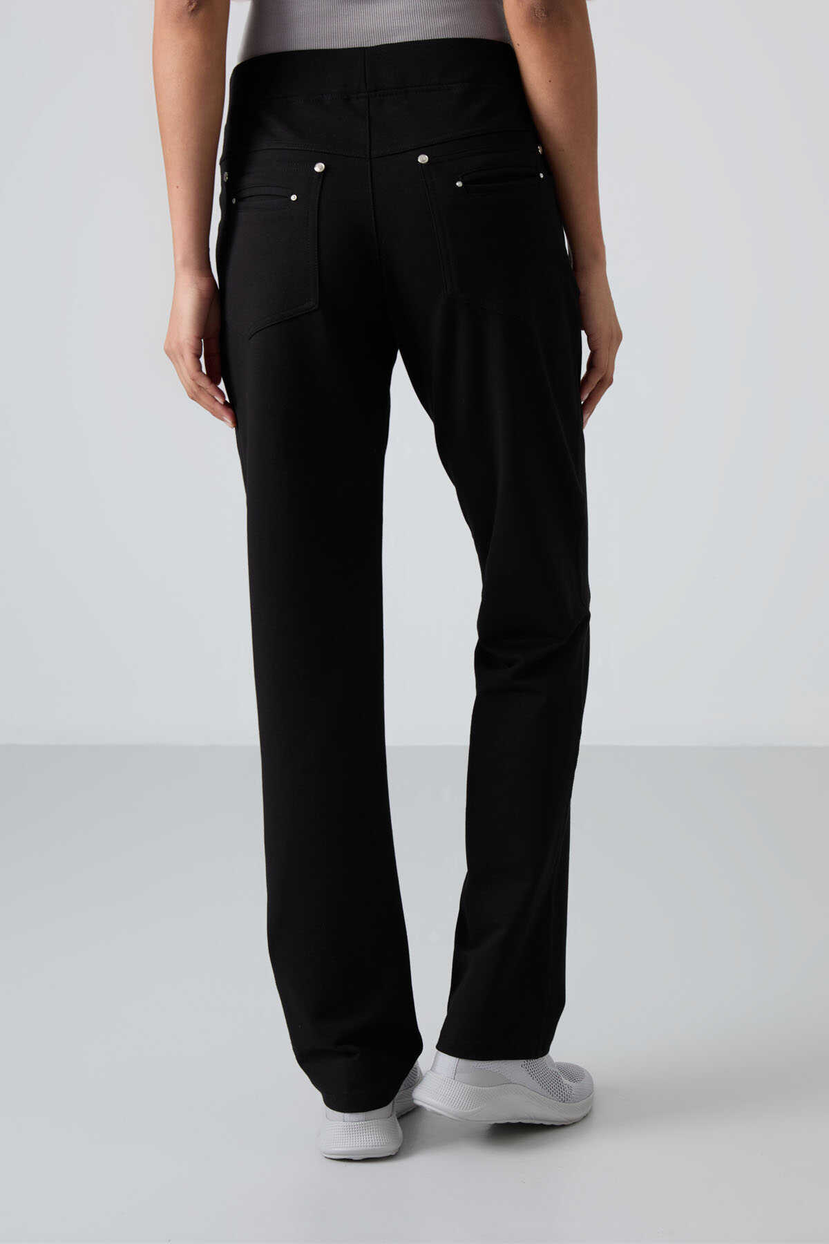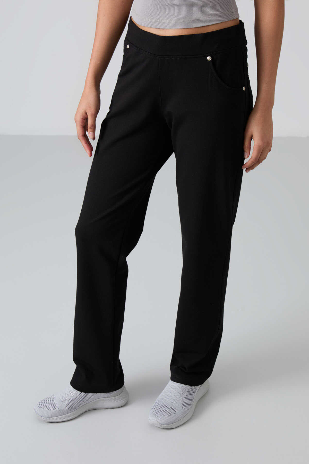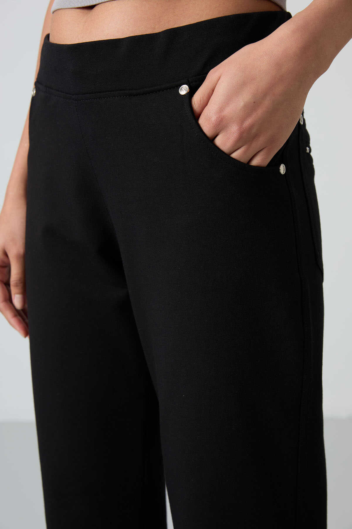 Tommylife Wholesale Black Stone Detailed With Pockets Comfy Classic Hem Women's Sweatpant - 94007