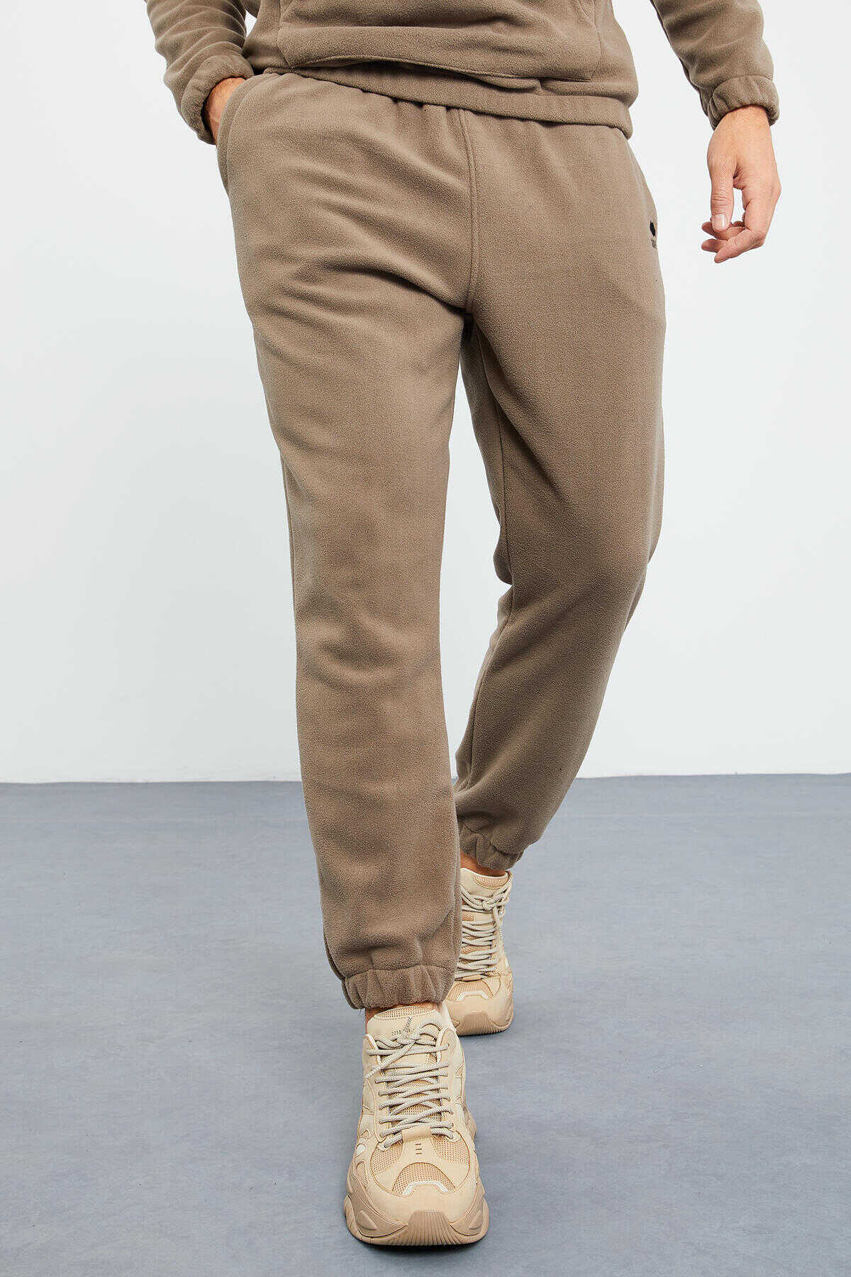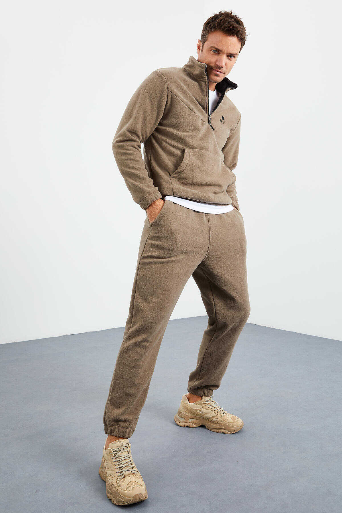 Product Name : Camel With Half Zipper Neckband Elastic Hem Men's Fleece Set