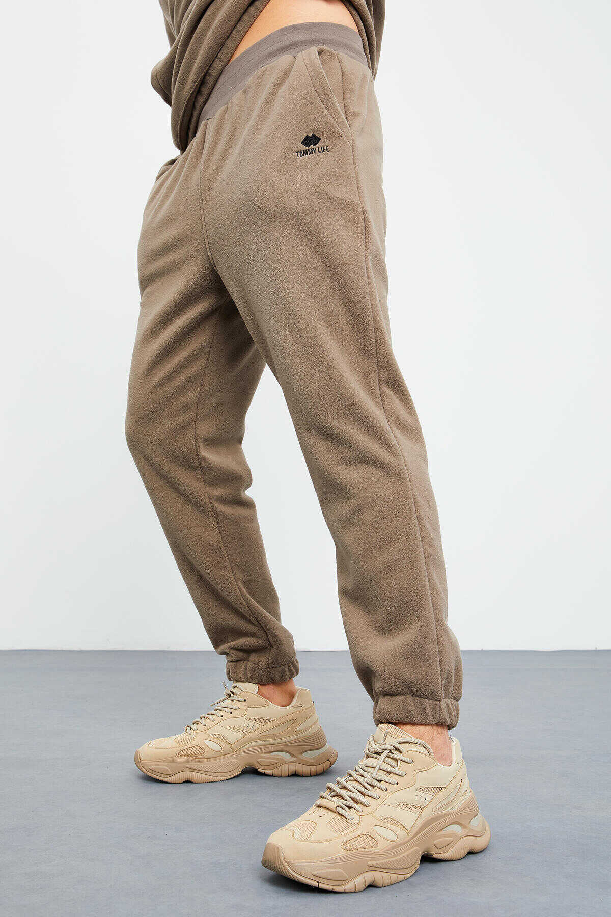 Tommylife Wholesale Camel With Half Zipper Neckband Elastic Hem Men's Fleece Set - 85159