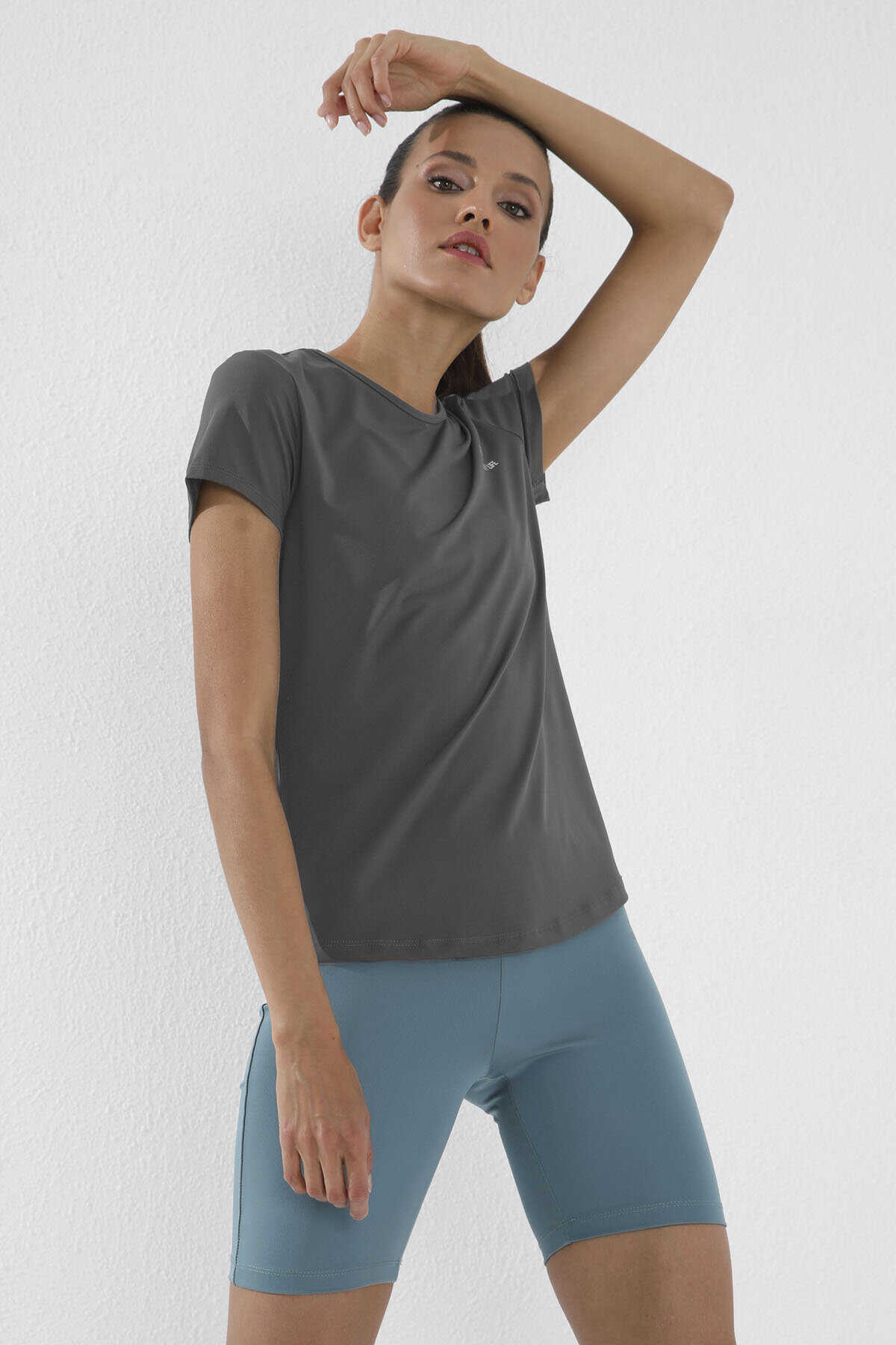Tommylife Wholesale Dark Gray Basic Short Sleeve Bike Collar Women's T-shirt - 97144