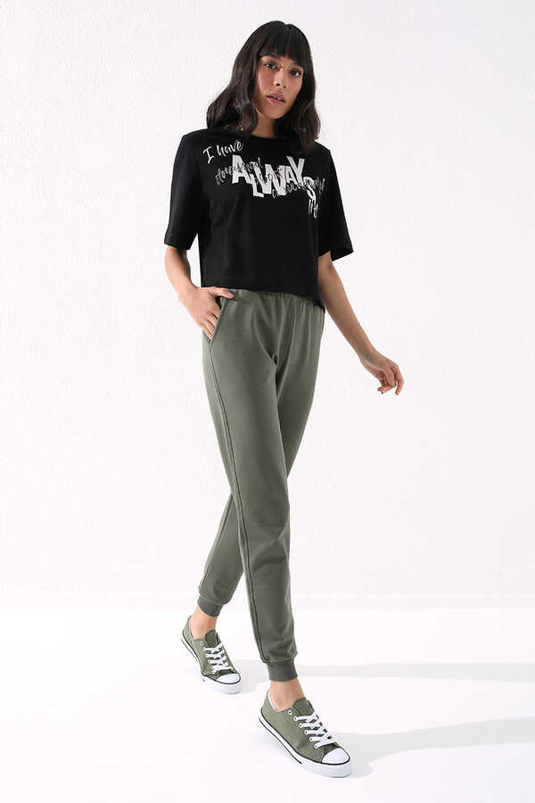 Tommylife Wholesale Drab High Waist Jogger Comfy Cuffed Women's Sweatpant - 94561