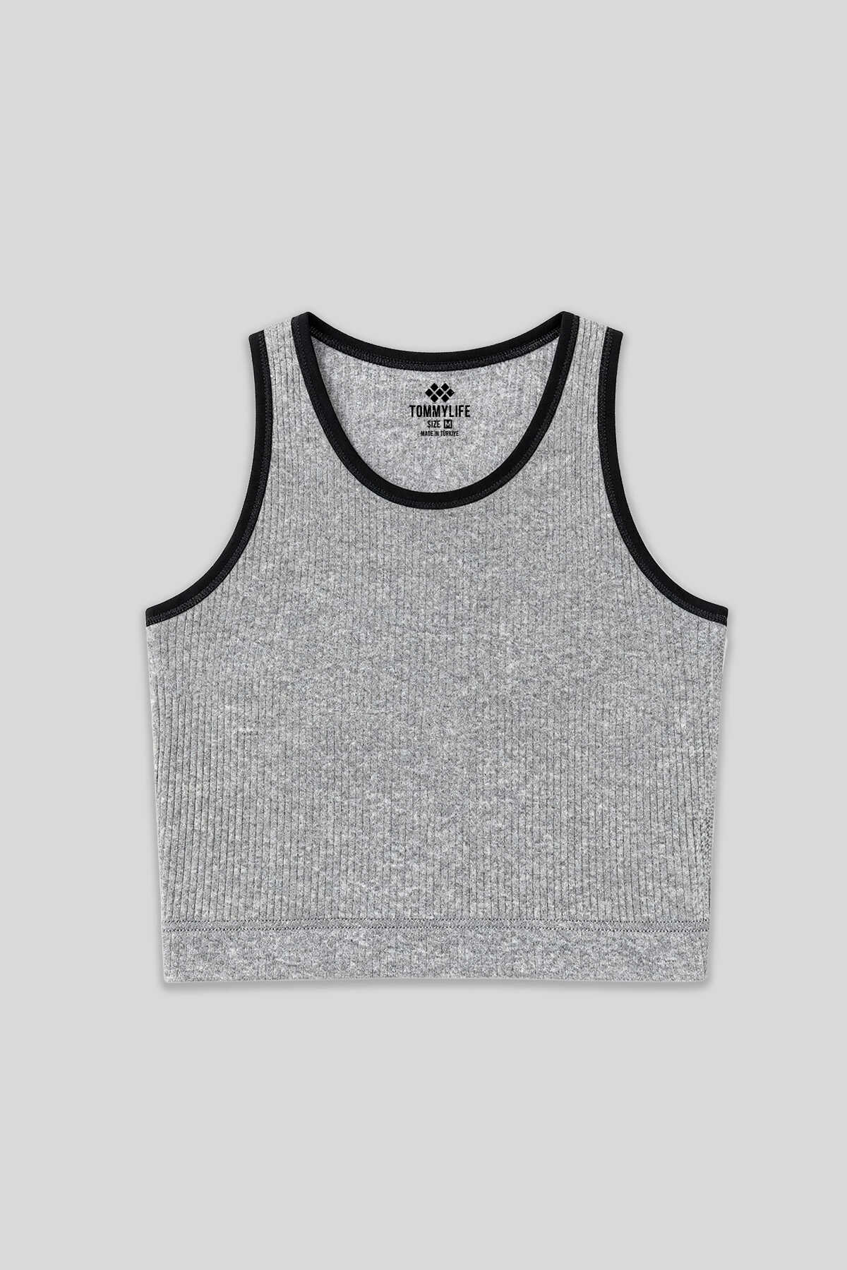 Tommylife Wholesale Gray Melange Sleeveless Skinny Fit U Collar Women's Crop Top - 97160