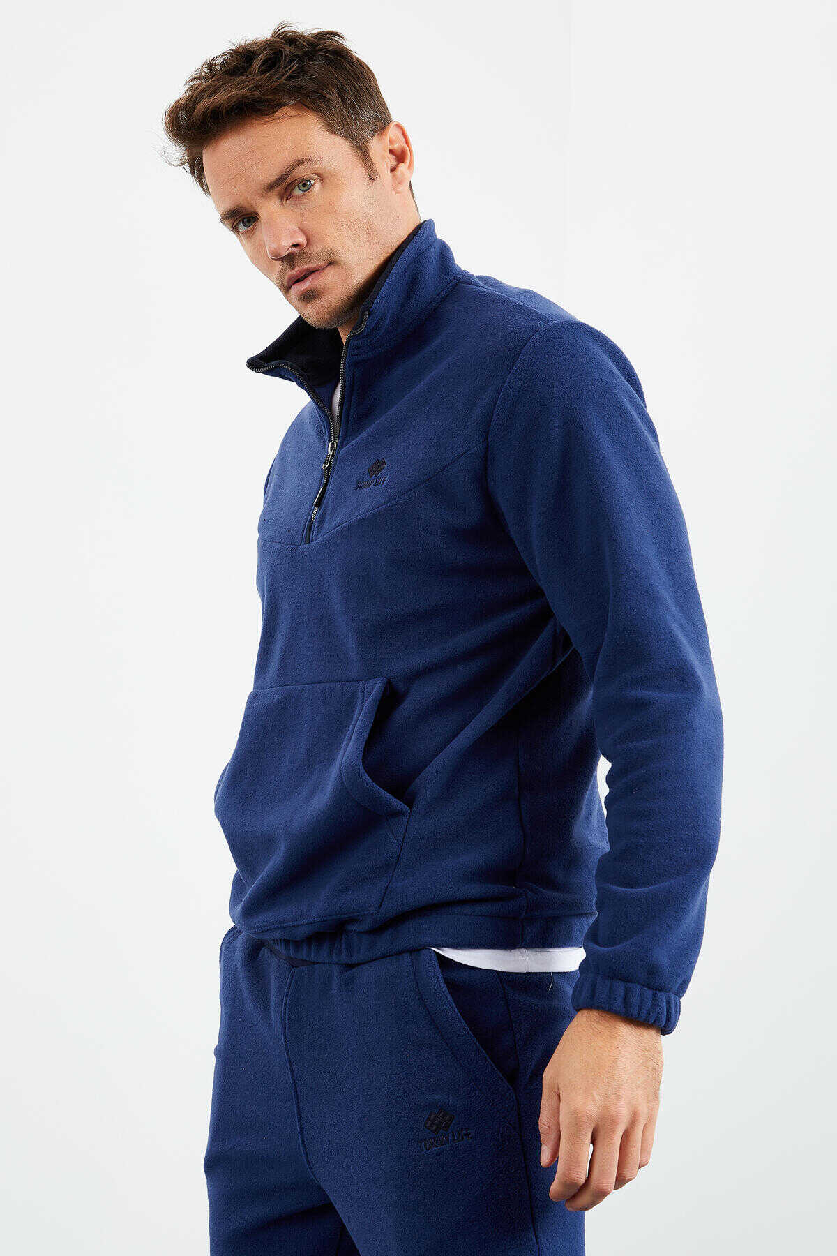 Product Name : Indigo With Half Zipper Neckband Elastic Hem Men's Fleece Set