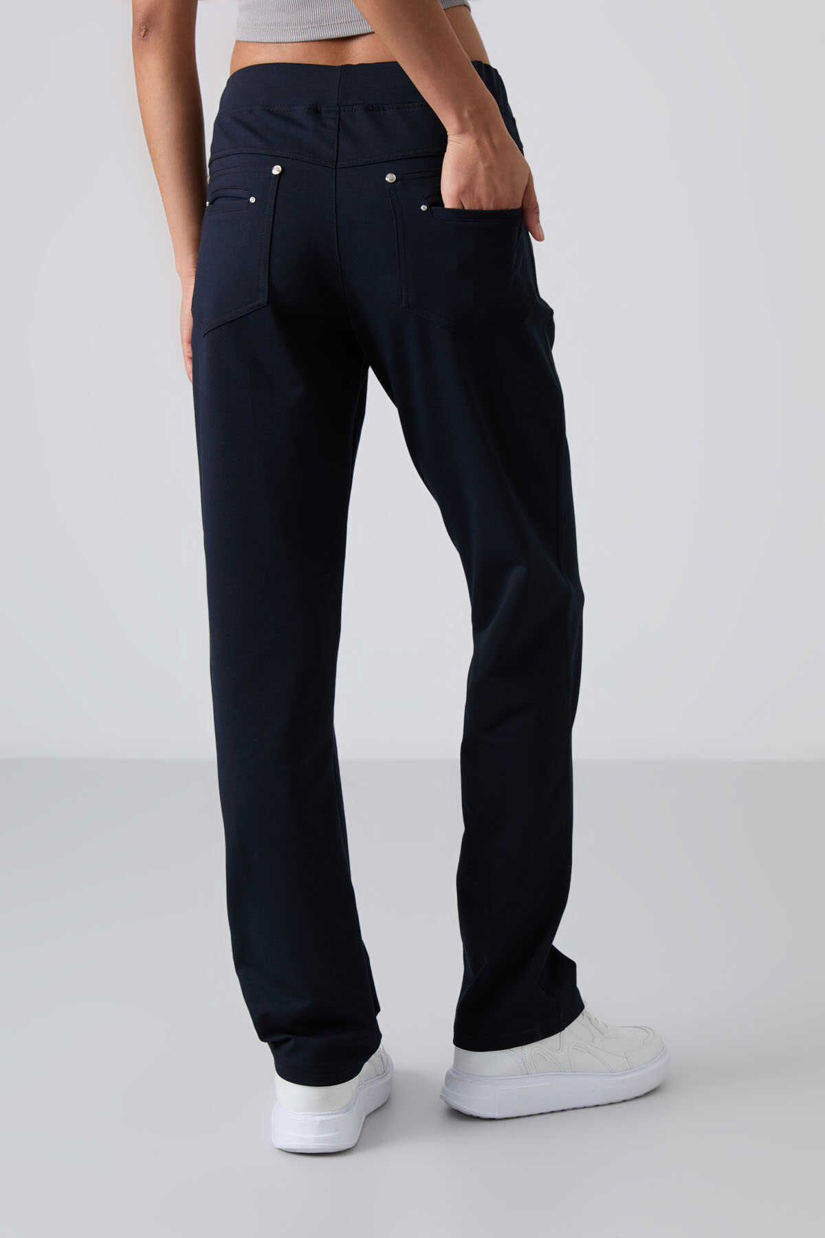Tommylife Wholesale Navy Blue Stone Detailed With Pockets Comfy Classic Hem Women's Sweatpant - 94007