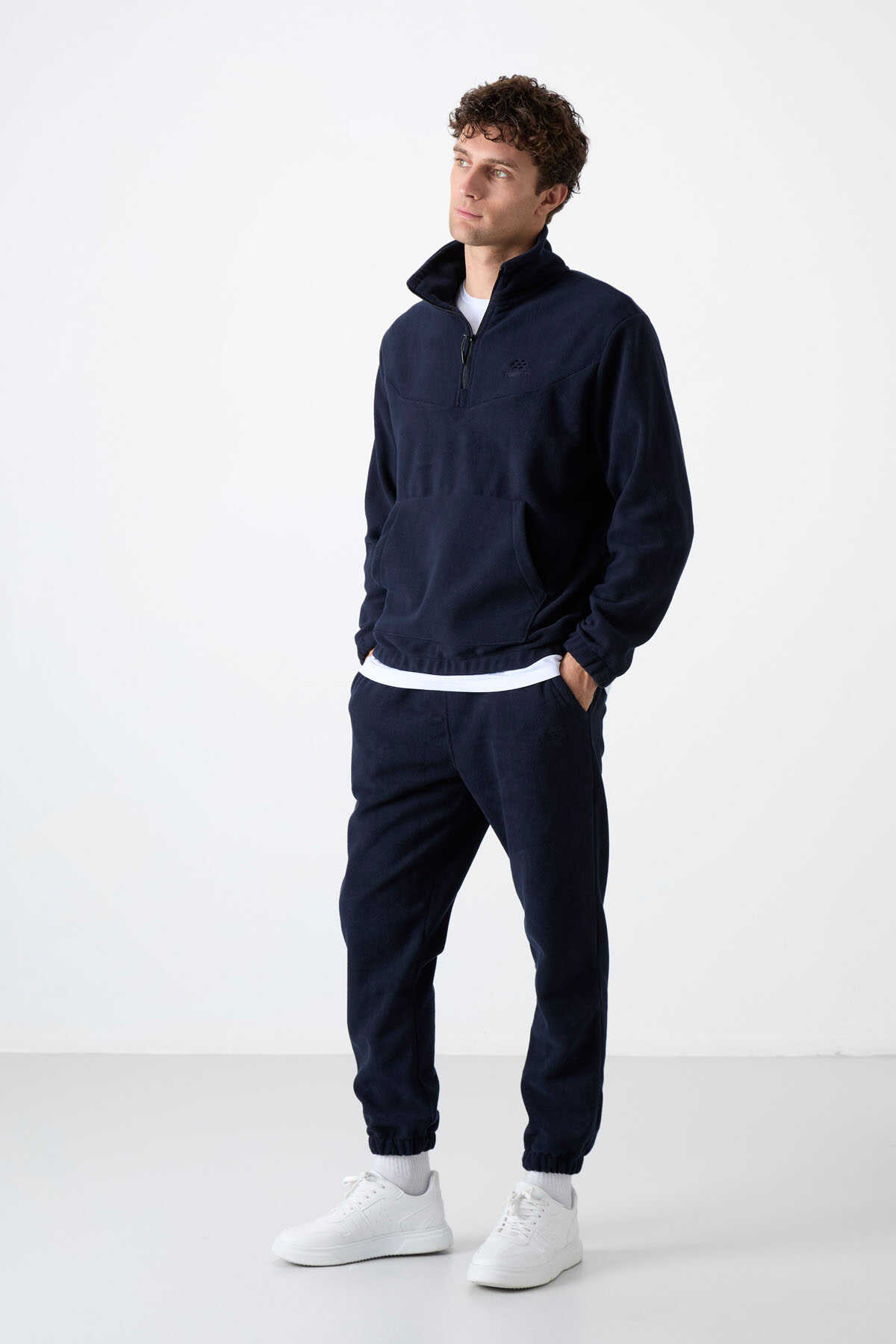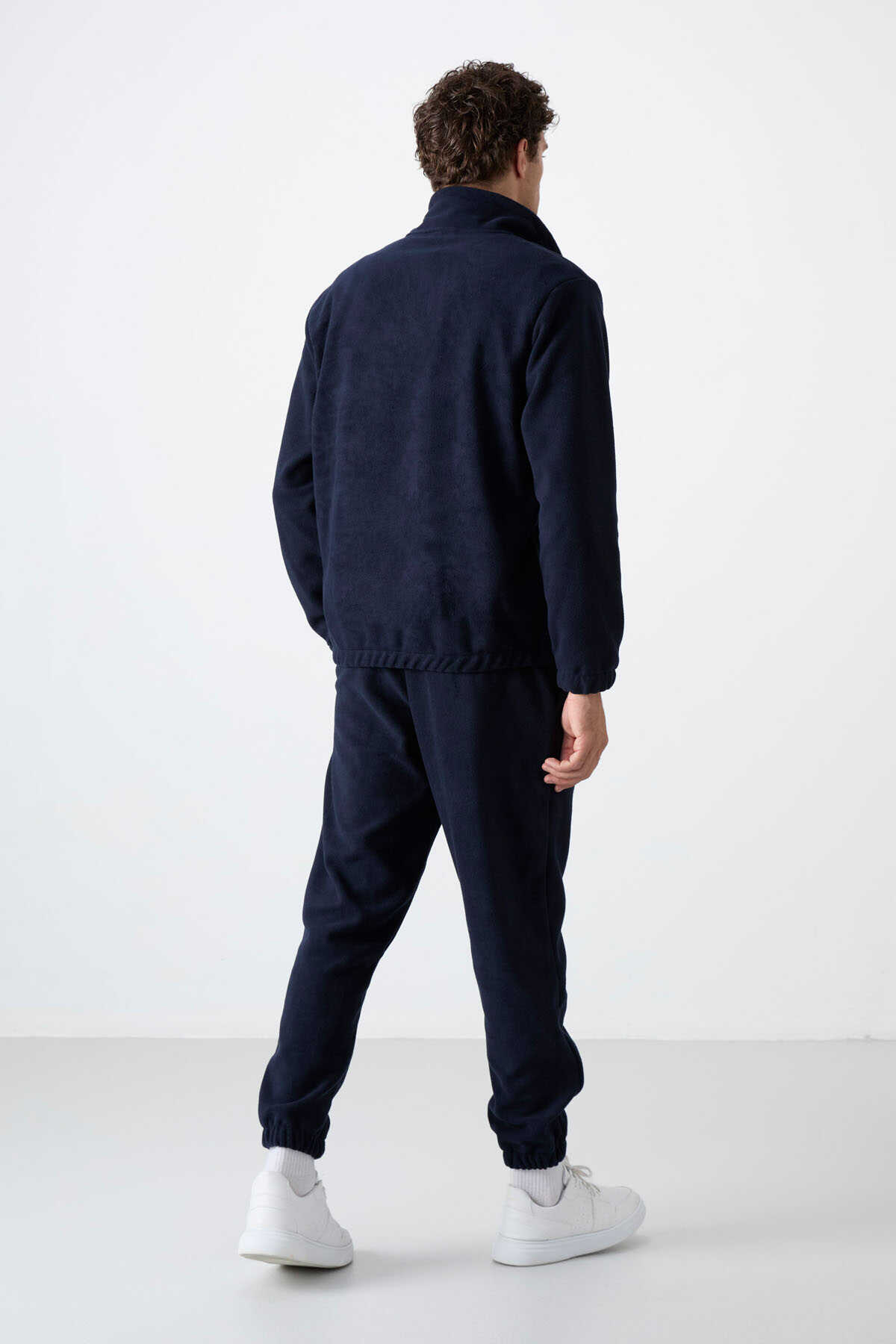 Product Name : Navy Blue With Half Zipper Neckband Elastic Hem Men's Fleece Set