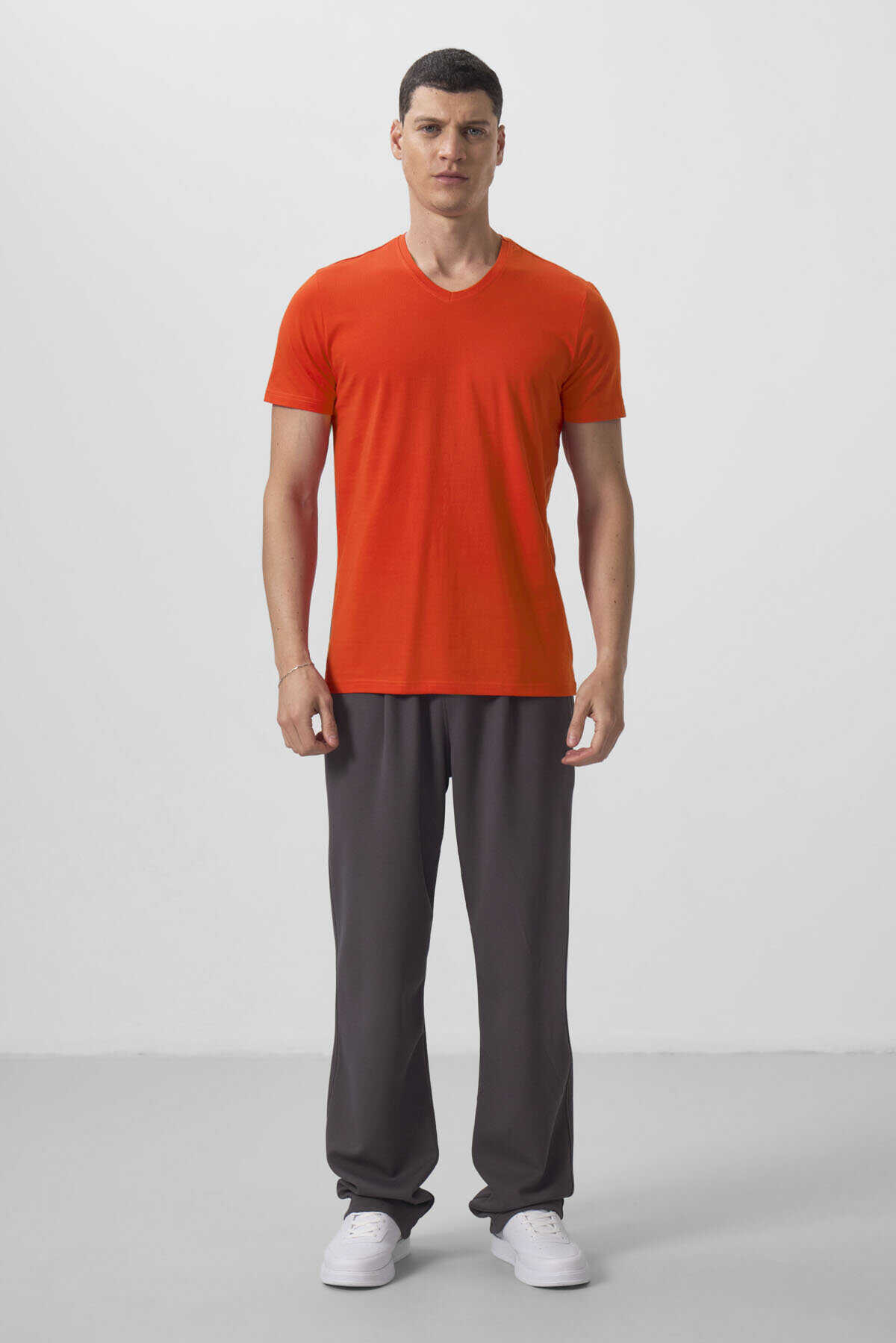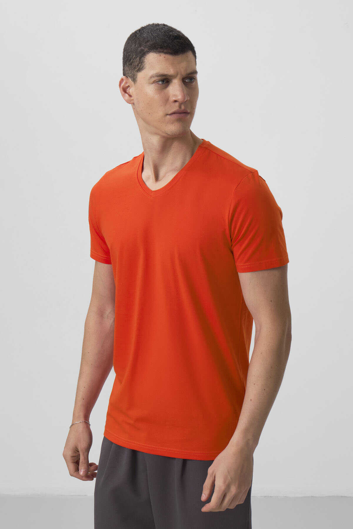 Tommylife Wholesale V Neck Standard Fit Basic Men's T-Shirt 87912 Orange